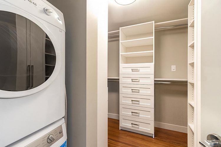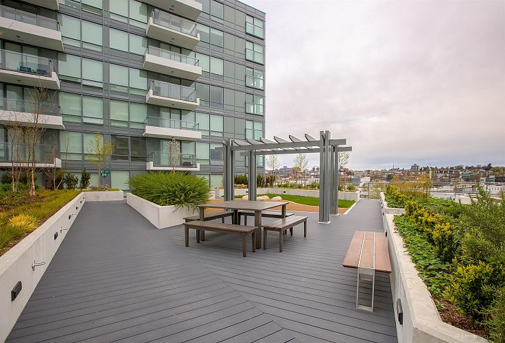 Rarely available top-floor residence offering unobstructed Vancouver views. This well-designed 1 Bedroom + Den + Flex home boasts soaring 8’4 ceilings, custom walk-in closets, & an efficient layout that maximizes every inch of space. The spacious updated kitchen features full-sized appliances & plenty of storage, while the smart floor plan ensures no wasted space—ideal for modern city living. Large south-facing windows flood the home with natural light, creating a bright & inviting atmosphere throughout the day. Enjoy the False Creek lifestyle, with the Seawall right outside your door & both the Canada Line & Expo Line SkyTrain stations just 500 metres away. Cafés, restaurants, Olympic Village, & vibrant neighbourhood amenities are all within easy walking distance. Potential to add A/C.
