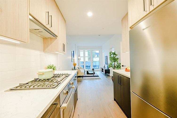 This brand-new 1 bedroom & 1 Den home faces a quiet inner street. It features modern cabinetry, hardwood flooring, quartz countertops, high ceilings, and central air conditioning. Den is ideal as a home office. Included 1 parking stall and 1 bike storage. Befitting its established location on the west side, Park Langara is a timeless design constructed in concrete, clad in brick with air-conditioning. Surrounding neighborhood offers everything you might need within walking distance including Langara Golf Course, Oakridge Centre, YMCA, Cambie Park & Tisdall Park. Short walk to Langara Skytrain Station. Within walking distance to top-ranked schools, Dr. Annie B. Jamieson Elementary and Sir Winston Churchill Secondary (IB program). Open House on Sun Feb 14, @2-4pm