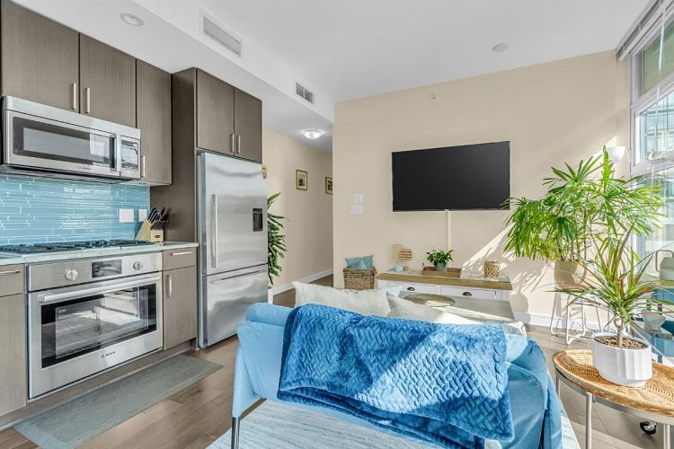 Welcome to Olympic Village living at its best. This bright fifth-floor corner home is filled with natural light from two walls of glass, making it a dream for plant lovers and anyone who enjoys open, airy spaces. With air conditioning, a spacious layout, and a versatile den, it’s ready for you to make it your own. Built just 10 years ago, The One is pet friendly and offers fantastic amenities including a pool, hot tub, and gym. Step outside and enjoy everything Olympic Village is known for, from the seawall to community centres, cafés, restaurants, and shopping, all within walking distance. Perfect for a first-time buyer, a downsizer seeking comfort and convenience, or anyone wanting to embrace one of Vancouver’s most vibrant neighbourhoods, this home is an incredible opportunity.