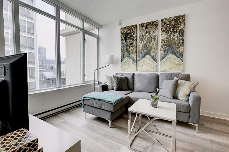 This beautiful one bedroom apartment with a living area is open concept, and is full of natural light, is in immaculate condition, recently updated with new flooring & paint, features a private exposure from the floor to ceiling windows. The kitchen comes complete with stainless steel appliances, granite counters and ample storage space. As part of the Hudson building, you will enjoy private access to Granville SkyTrain station and will be able to make use of the other amenities on offer, including a concierge, fitness centre. You could not ask for a more central location of shops, restaurants, bars and entertainment venues right on your doorstep. Call your Realtor!