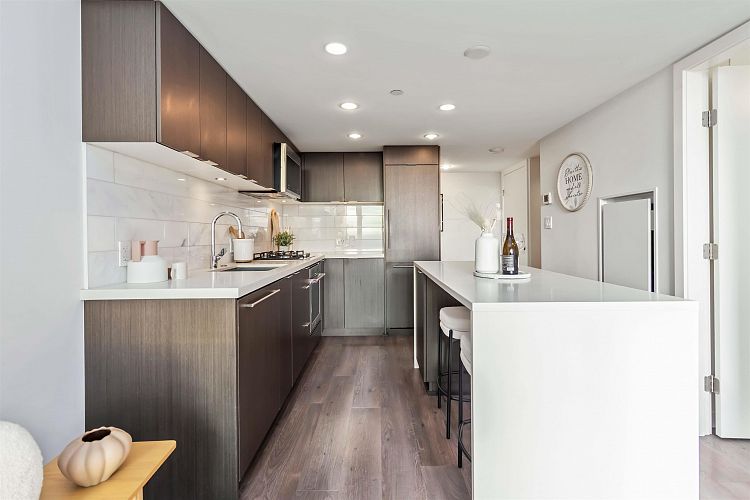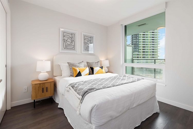 Step into refined urban living in this elegantly designed 1bed residence at the coveted Cambie & Marine district. This sophisticated home offers a bright southeast exposure with expansive city, mountain, and ocean views, complemented by an open-concept layout, full-size premium kitchen appliances, and a spacious primary bedroom complete with walk-in closet. This concrete building provides elevated comfort and security with centralized AC, concierge service, fitness centre, and landscaped garden amenities. Perfectly positioned just steps to the SkyTrain, shops, restaurants, T&T, and everyday conveniences. School catchment: Sir Wilfrid Laurier Elementary and Sir Winston Churchill Secondary. OPEN HOUSE Sun Dec 7th 2-4pm