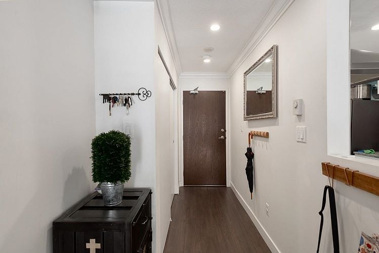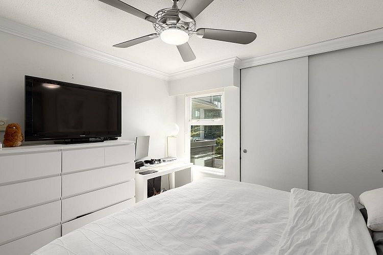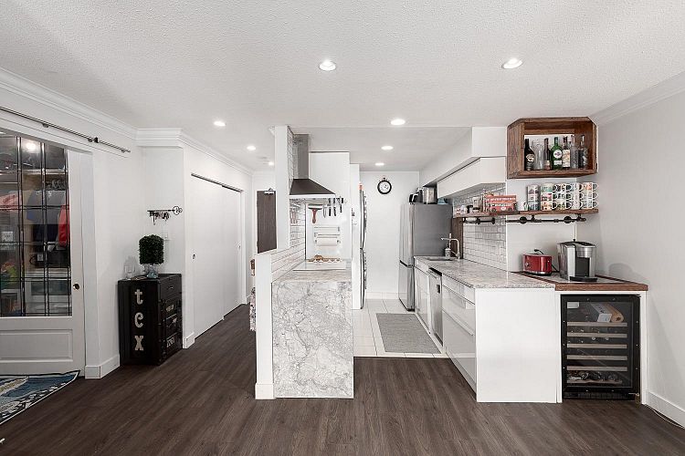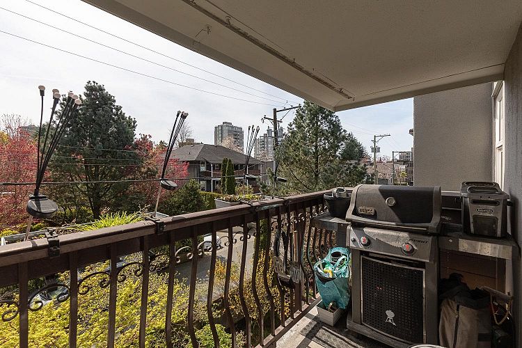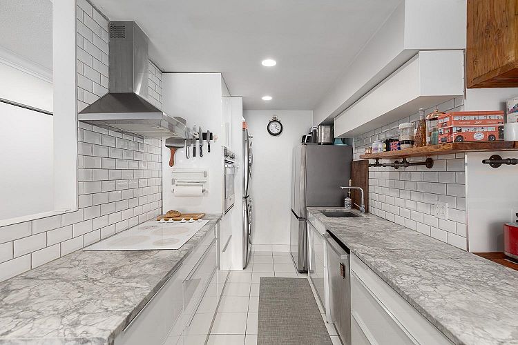 Welcome to this lovely 1 bed + den, 1 bath condo nestled in the Fairview neighbourhood on a quiet street. A very well-maintained building that is fully rain screened and new windows and doors (2023)This top-floor unit offers private & quiet home with tons of natural light from its sunny south-facing balcony. Step inside to a thoughtfully renovated space with modern touches throughout. The kitchen, completely redone in 2015, boasts a stunning quartzite waterfall countertop, high-end appliances and ample cabinetry. The bath was reno'd in 2022, featuring a new bath/shower, sink & toilet. Other recent upgrades include washer & dryer & laminate flooring throughout. Just steps to South Granville shopping, the future Broadway SkyTrain & minutes to DT. (No Dogs Allowed, Cats Only)