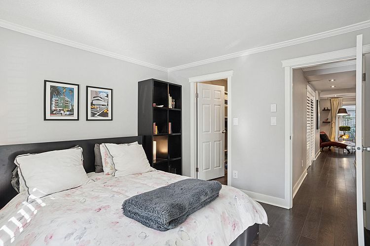 Experience townhouse-style living in this stunning 1 bedroom unit located in a boutique rain-screened low-rise building in the sought-after West End. This corner ground level unit features a spacious north-facing patio at the entrance, along with a south-facing deck accessible from the dining area and bedroom. With a modern kitchen, updated bathroom, and new flooring, this unit exudes style. The generously sized primary bedroom boasts a walk-in closet and cheater ensuite, perfect for a king-size bed. Enjoy the convenience of being mere steps away from Sunset Beach, and all the amenities, shopping, cafes, and restaurants along Davie St. and Denman St. in vibrant Vancouver. Easy to show, call today!