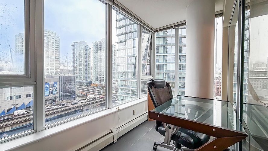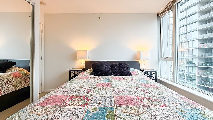 Welcome to Firenze Tower II where you can enjoy North West 180 degree views over the City, North Shore Mountains, Rogers Arena/BC Place and False Creek! This Airbnb friendly corner suite features 1 bed + 1 bath + 1 in-suite storage, boasting quartz countertops and an efficient floor plan. Amenities include a 25 meter long indoor swimming pool, hot tub, sauna, equipped gym, outdoor area and a big screen theatre. Excellent location, bordering Downtown/Gastown/Crosstown, walking distance to Costco, Rogers Arena, BC Place, restaurants and Skytrain. Comes with one parking. Pet and Short Term Rental/Airbnb allowed. OPEN HOUSE, Sat/Sun, Dec 20/21, 1:00-3:00PM. First come first served. A/O, S/R, Jan 9, 2026. Open House, Sun, Jan 4, 2026. 1-3PM.