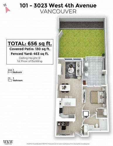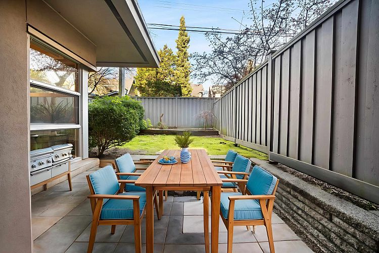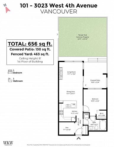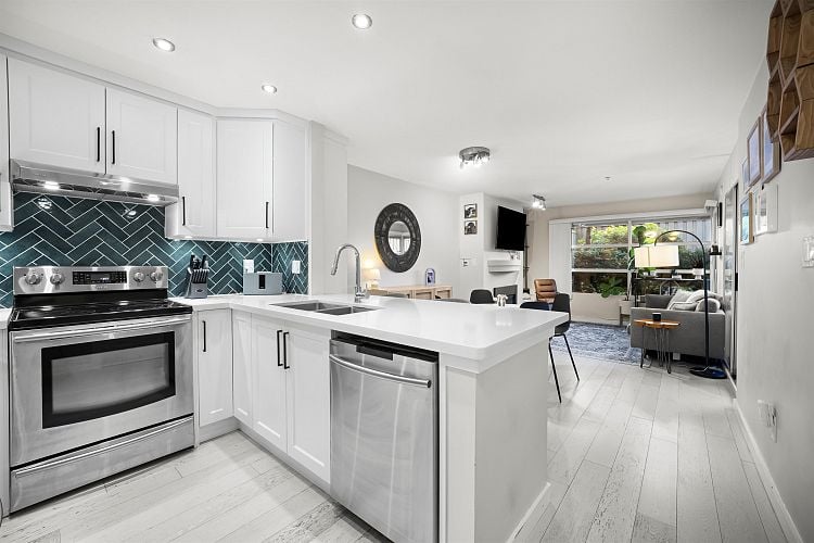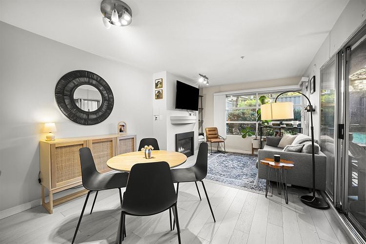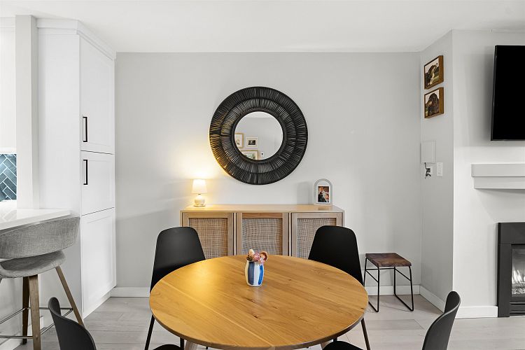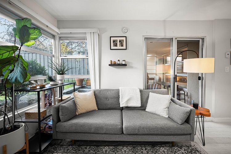 This spacious one-bedroom plus den is quietly positioned away from West 4th, offering a functional layout with laminate flooring, an updated kitchen with stainless steel appliances, gas fireplace, generous size bedroom with ample storage, and in-suite laundry. The private patio opens to a fenced yard, ideal for entertaining or pet owners. Bonus: Two side-by-side parking stalls and a storage locker. Two pets and rentals (180 day minimum) are allowed. Buy with confidence into this Fully Rain-screened building with recent upgrades including the roof (2020), patio membranes (2025), and fitness equipment (2025). Exceptionally located, steps from the brand new Fresh Street Market, West 4th shops, Broadway amenities, Kits Beach, and transit lines.