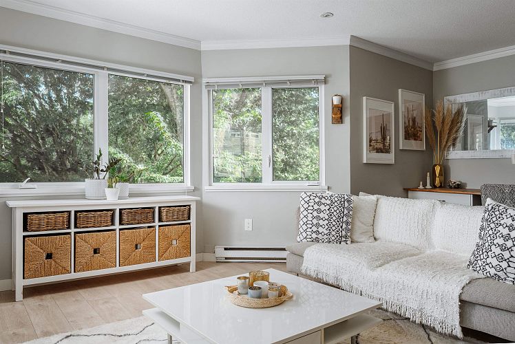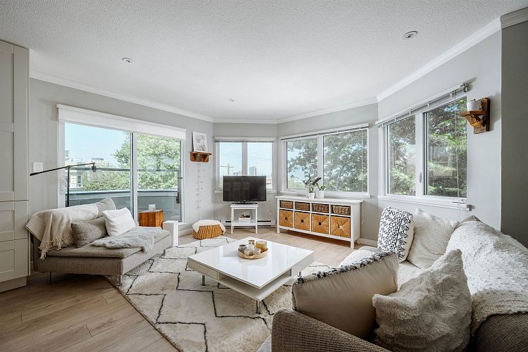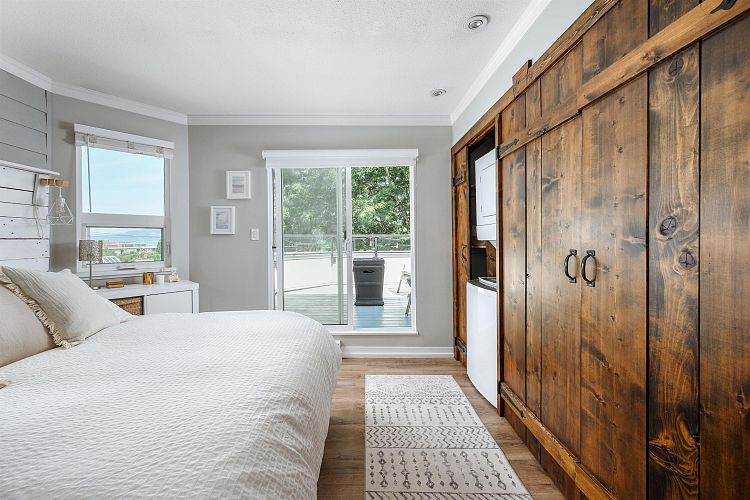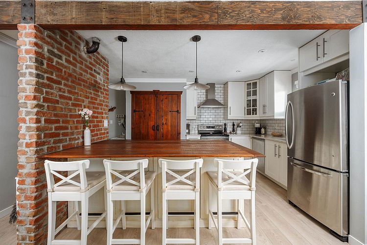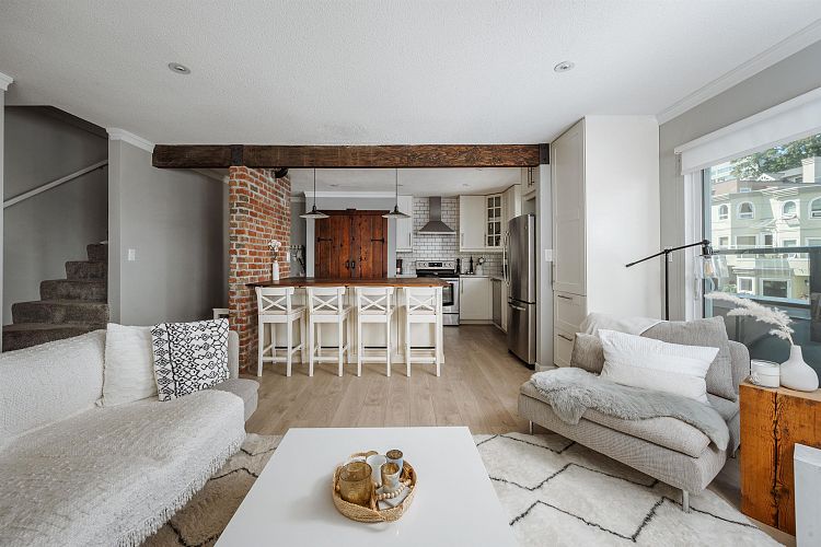 2 STOREY CONDO | TASTEFULLY UPDATED | ROOFTOP DECK | Quietly tucked away on a no-through road, sits this modern, 2 storey, corner condo in Fairview slopes. Just steps to Granville island, false creek, sea wall and water taxi, all restaurants, convience. LAYOUT; 774 SQFT w/ open concept front of mind + plenty natural light. 2 storey's; living + kitchen on main level. Full 3 piece updated bathroom, primary bedroom with in suite laundry upstairs, that walks out to your 145 sqft, private, rooftop deck with OCEAN, MOUNTAIN AND CITY VIEWS! FEATURES; New laminate flooring, neutral paint + baseboards. Kitchen complete with white shaker cabinets, custom built in pantry, quartz counter tops, large island made with reclaimed wood providing extra storage underneath. Complete with 1 parking.