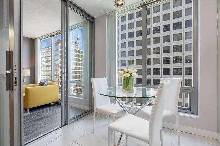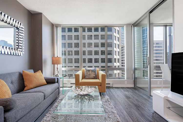 RESIDENCES ON GEORGIA. This well designed one bedroom and den is ideal for a sophisticated homeowner or investor. Enjoy a well-proportioned bedroom, a functional den perfect for working from home, and a bright living space with floor-to-ceiling windows. Take in beautiful city views of the downtown corridor and the Vancouver skyline. Located steps from high-end shopping and dining on Robson and Alberni Street, with SkyTrain, the Seawall, and Coal Harbour just minutes away. This award-winning building offers a well-run strata with strong financials, plus hotel-style amenities including 24-hour concierge and security, a fitness centre, boardrooms, and an elegant garden terrace. An outstanding opportunity to own in a prime downtown location offering comfort, convenience, and long-term value.
