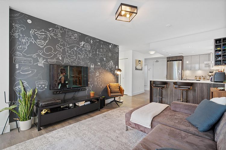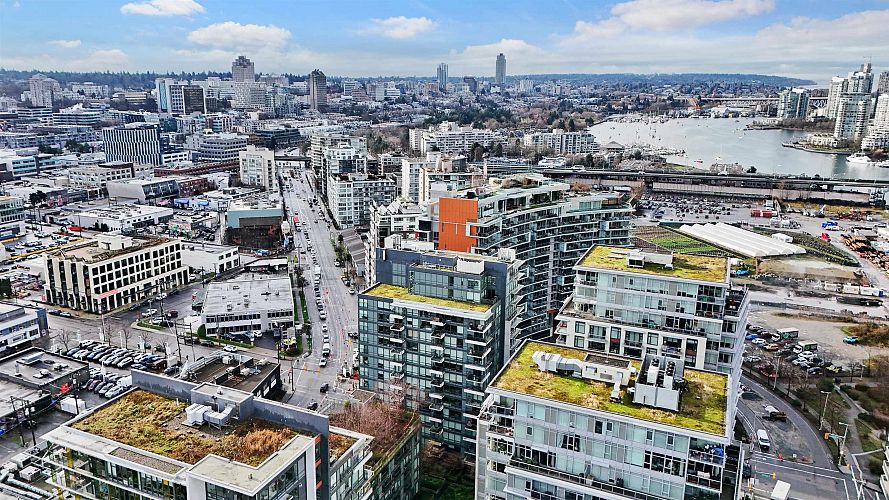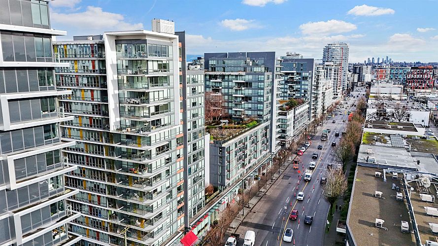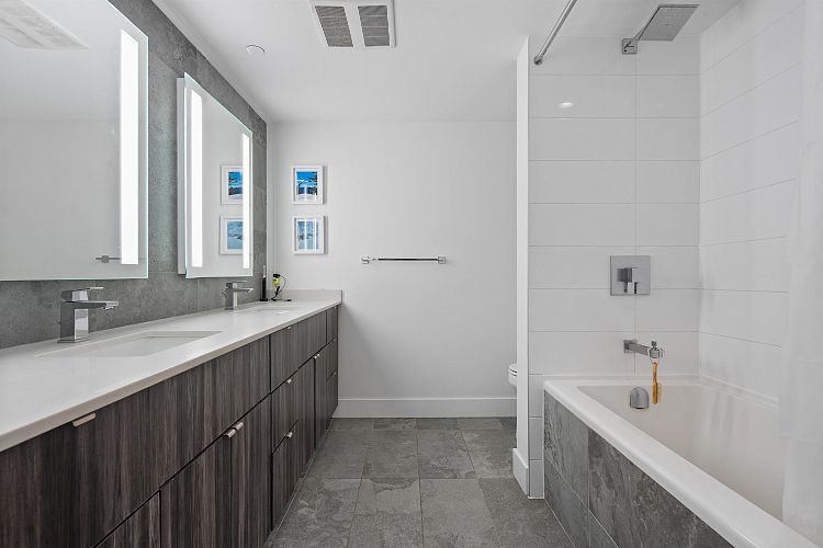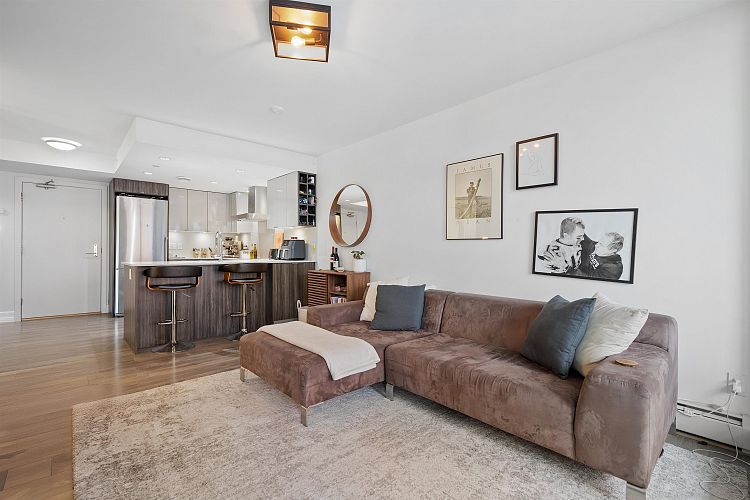 Spacious and functional 1 Bed + Den + Flex + Balcony in Olympic Village with city, mountain & water views. This bright, open-concept, Airbnb-friendly home features floor-to-ceiling windows, German wide-plank flooring, and sunny SW exposure. The gourmet kitchen offers high-gloss cabinetry, induction cooktop, and stainless steel appliances. Generous primary suite with spa-inspired ensuite, double sinks, ample storage, and soaker tub. Enjoy a sunny balcony perfect for BBQs. Epic at West amenities include a fitness centre, 8,500 sq.ft. rooftop patio, concierge, clubhouse, and dog spa. Steps to the Canada Line, seawall, restaurants & shops. Parking & storage included. Tenanted 24 hours’ notice required.