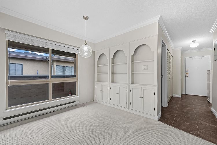 Welcome to La Belle Court. This TOP FLOOR over 700 sq/ft 1 bedroom unit offers a very efficient floor plan and south facing covered patio. The suite itself has a huge living and dining space, large bedroom that easily accommodates a king sized bed, ample closet space, insuite laundry and partially updated bathroom and kitchen with newer appliances and granite counters. Well maintained partially rainscreened building with upgrades incl siding, windows & sliding doors (2000 & 2003), roof (2019), pipes (2000). Conveniently located on the West 10th bike route and centrally located close to VGH, the South Granville and W Broadway shops and the upcoming Millenium Line to UBC. Site Labelled FSOA 'High-Rise' in Broadway Plan. 1 parking, 1 storage locker. Pets allowed & Rentals allowed.