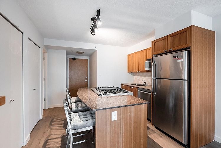 Bright and beautiful 1bedroom plus den at The Park, just steps from Stanley Park, Lost Lagoon, Coal Harbour, and the Seawall. This home enjoys afternoon sun and quiet privacy on the peaceful side of the building, allowing you to keep the blinds open while soaking in the light. Well cared for by its owners and truly move in ready, the suite features a gas fireplace and gas stove. The secure, well managed building is mostly owner occupied, creating a friendly and respectful community. Enjoy spotless common areas and responsive management. Robson and Alberni Street shops, cafés, restaurants, groceries, and transit are only one block away. A rare West End home that blends nature, walkability, and city living, rental and pet friendly.