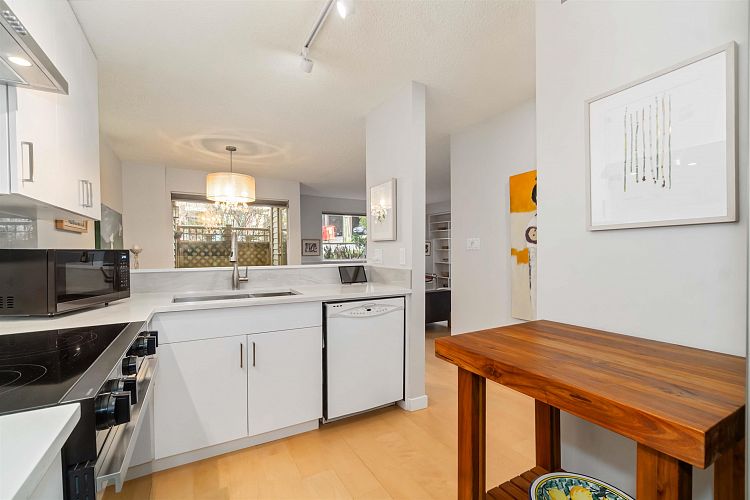Welcome to this recently renovated & move-in ready, spacious 1 bdrm condo w/ exceptional privacy, bright morning light, a private courtyard & patio! Freshly painted, this well planned living space w/ a bright open layout has new engineered HW floors, new quartz countertops, new kitchen cabinets, a new fridge & stove, large windows, a fireplace, a pantry, an updated semi-ensuite bathroom, + a spacious bedroom w/ room for a king-size bed. 2 secure parking stalls + a storage locker in a fully rain-screened, well-managed complex on a quiet tree-lined street minutes from Granville Island, False Creek, South Granville shopping, Vancouver General Hospital, cafes and downtown. A great place to call home or a very wise investment!