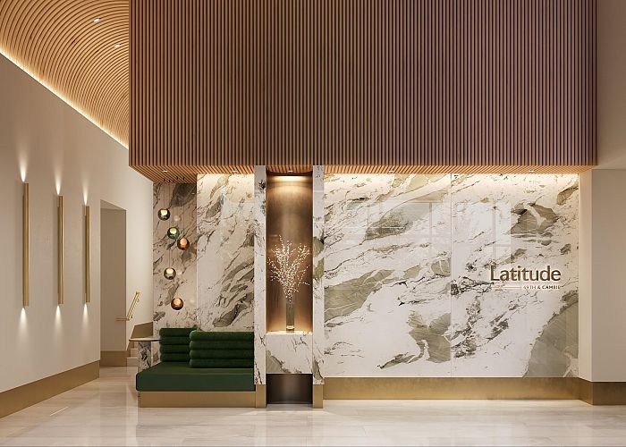 Designed for modern West Side living, this Jr 1 bedroom home at Latitude offers an efficient layout in Vancouver's Oakridge neighbourhood at Cambie Street and West 49th Avenue. Steps from the Canada Line with quick access to Downtown, Oakridge, and YVR, the home features a sliding glass door to separate the bedroom for added privacy. The kitchen is finished with European-inspired cabinetry, quartz countertops, and a premium Miele appliance package including a gas cooktop and speed oven. Smart living is enhanced through the Mosino smart entry system integrated with an Ecobee thermostat and Hilo Smart Mirror. Residents enjoy curated amenities including a fitness centre, dining lounge with outdoor BBQ area, study rooms, children's playground, on-site childcare, and automated parcel lockers.