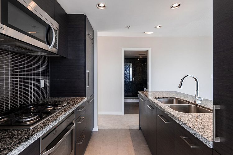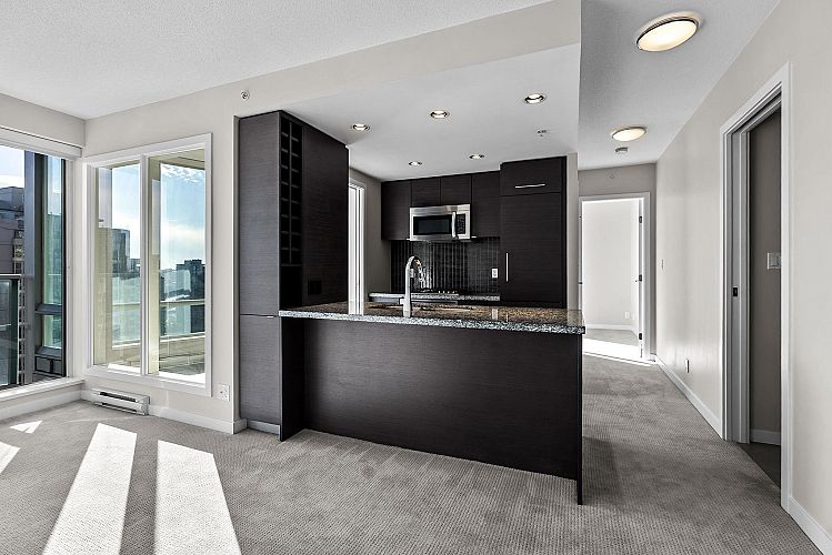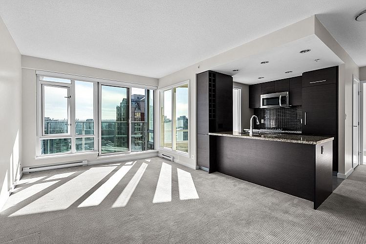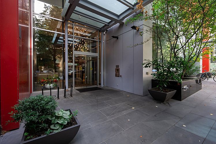 'Atelier' on Robson - one of DT Van's most convenient & desirably located buildings. This 1bed+solarium+den home offers an open concept layout w/ floor-to-ceiling windows, making for a commodious space w/ gorgeous views of DT, BC Place, Metrotown & through to Mount Baker. Offering a beautiful kitchen with granite countertops, s/s appliances with gas cooktop, dark cabinetry, a spacious breakfast bar and built-in wine rack. This well-run building offers great amenities such as a bike room, meeting room, party room, 24-hour concierge, fitness centre w/ yoga and spin studio, steam room and tranquil rooftop garden. One parking stall is included and just steps away from Robson Street eats, Rogers Arena, BC Place, Vancouver Library, IGA & more! Opens: Sat, Feb 28th & Sun, March 1st from 2-4pm.