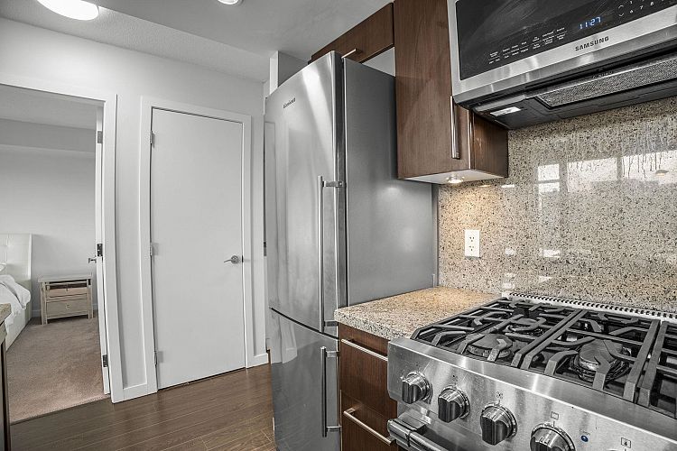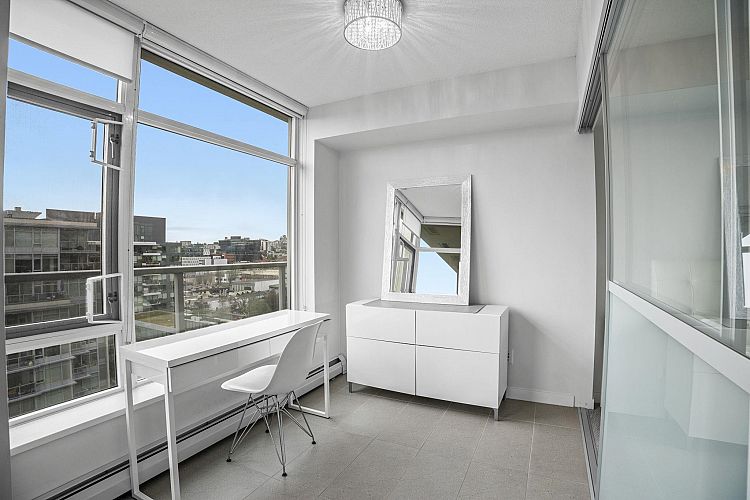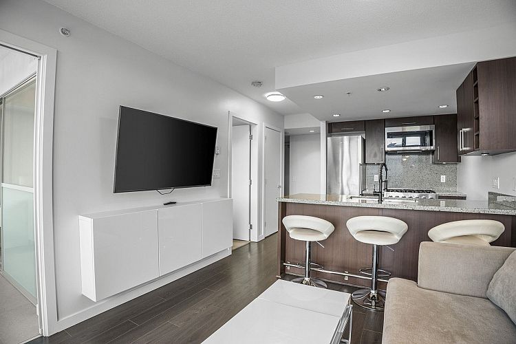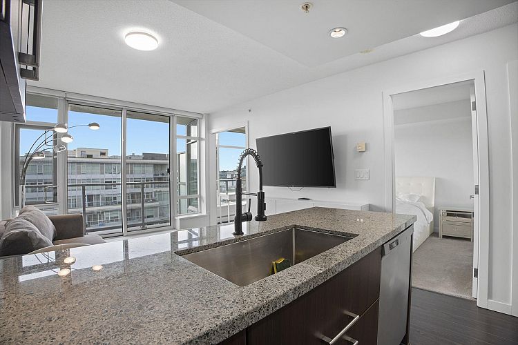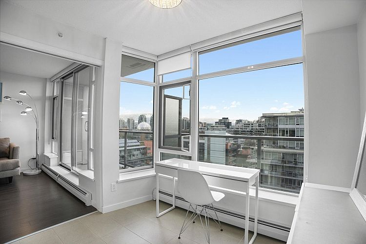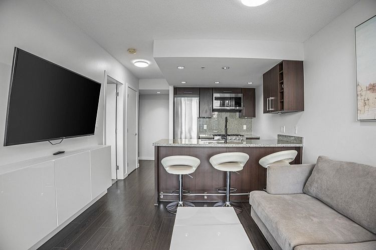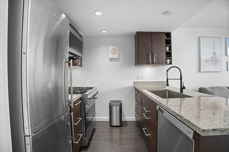 Style meets function at Wall Centre False Creek. This updated one-bedroom and den in Olympic Village features an efficient open-concept layout with a den ideal for a home office, along with updated paint, an updated sink, an upgraded hood fan, refreshed carpeting, and thoughtful designer touches. Floor-to-ceiling windows bring in abundant natural light, and the kitchen offers granite countertops and high-end stainless steel appliances. Enjoy easterly city and mountain views from the living room and your private patio. Amenities include a full gym, outdoor patios with a playground, and meeting rooms, all just steps to the seawall, restaurants, shops, cafés, transit, and Downtown. Parking is included—call today for your private showing. https://youtu.be/RuaS_f1g-FQN OPEN SAT FEB 29 2 TO 4PM