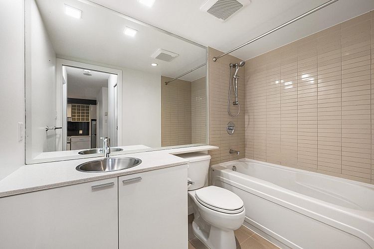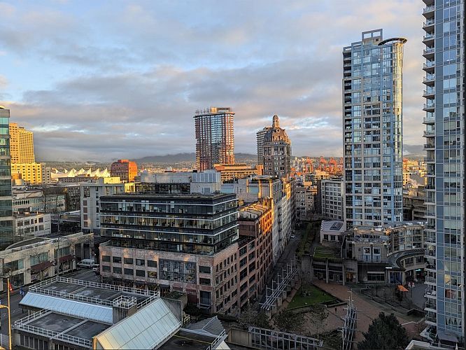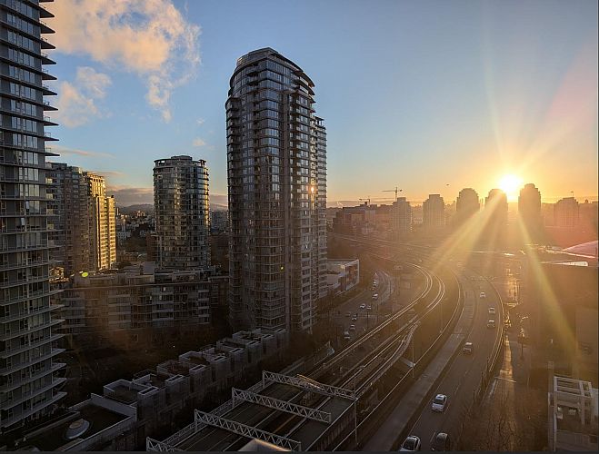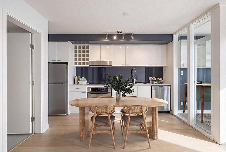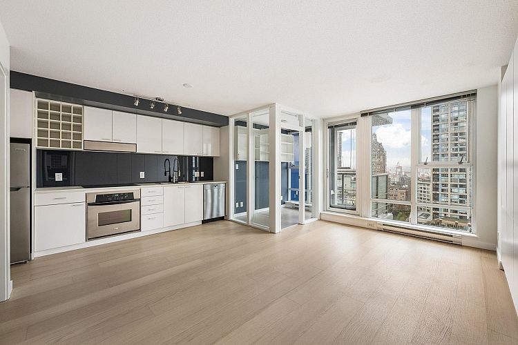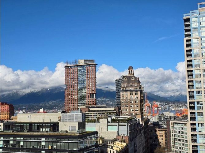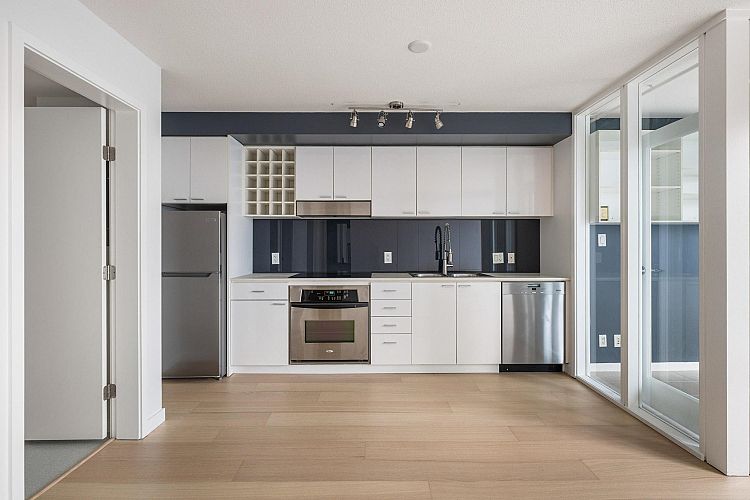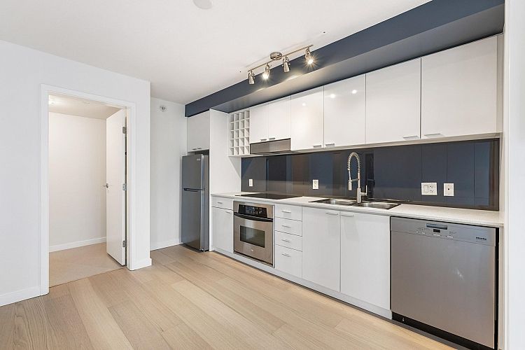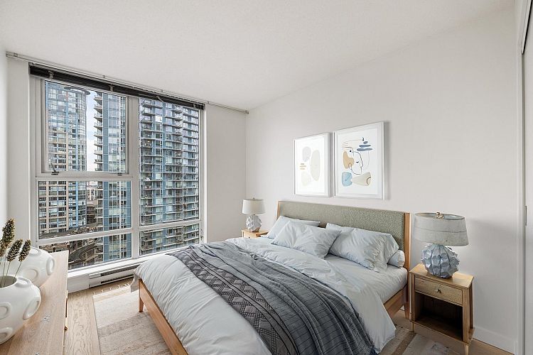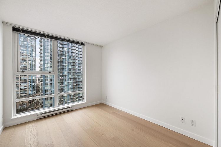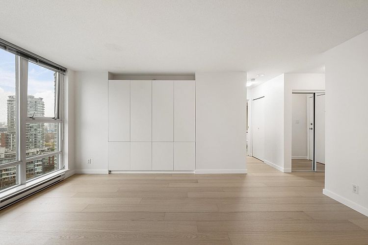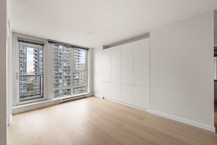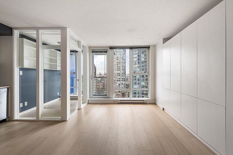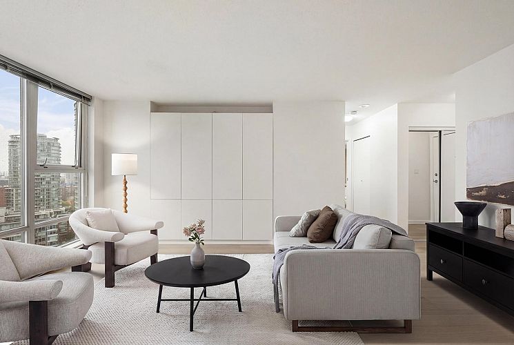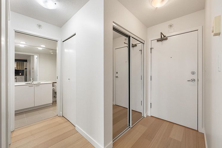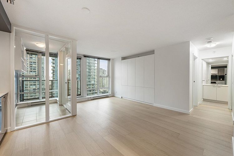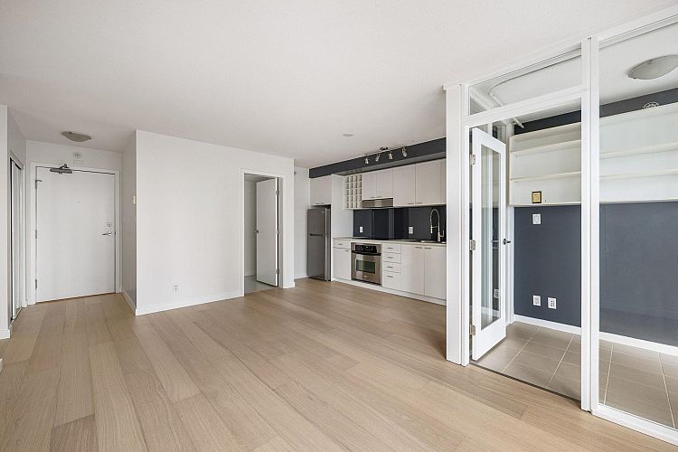 Wake up to majestic mountain views from your private balcony or your floor-to-ceiling windows in this bright 1 bed & den home. Light-filled solarium for an office or dining, clean Scandinavian aesthetic featuring new white oak floors, minimalist built-ins and freshly painted. The kitchen has a generous quartz counter workspace, new fridge and cooktop and a large pantry/storage room. Spectrum 4 is Concord Pacific’s most sought-after building with a well-run strata! Full exterior renewal in 2025, updated lobby, common area carpet and paint, elevator upgrades. In-suite laundry, bike lockers, 24-hour concierge and Club Ozone with gym, pool, sauna, hot tub and lounge. Outside your door: the Seawall, SkyTrain, shopping at Loblaws and Costco and amazing restaurants. Open Sun 2-4pm.