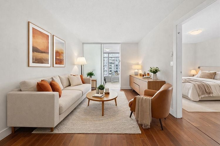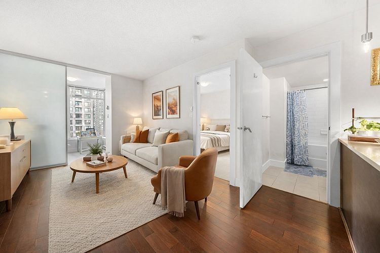 THE BEASLEY- PRICED TO SELL. This beautiful retreat is filled with natural light and stunning city views from both the bedroom and solarium. Rich hardwood thru-out, with a heated, enclosed solarium perfect as a serene home office or cozy den. Spacious in-suite storage & laundry for everyday ease. Floor-to-ceiling windows bathe the home in sunlight on one of the most desirable exposures. Spa-inspired bathroom with heated floors, and a stylish kitchen with S/S appliances, full-size fridge, and stone countertops. Enjoy full service concierge, a well-appointed fitness centre, elegant party room, and an 8th floor Dog Park Amenity Terrace with entertainment lounge. Bonus 1 parking and 1 storage locker. Excellent tenant on month to month lease. CONTACT LISTING AGENT to view.(Floor Plan Available)