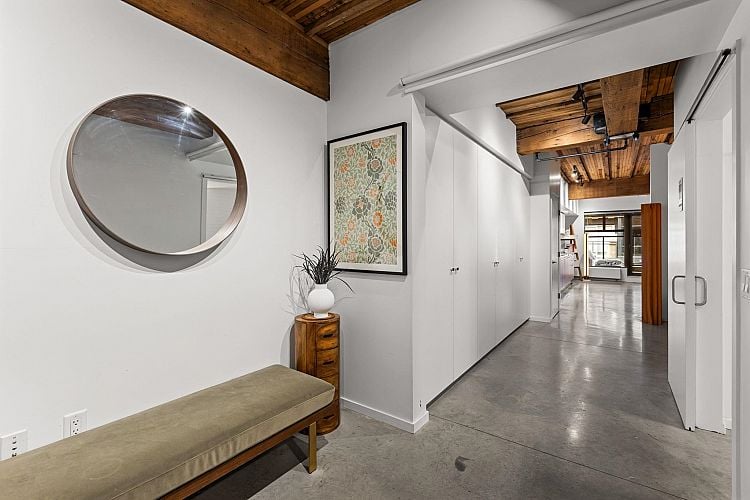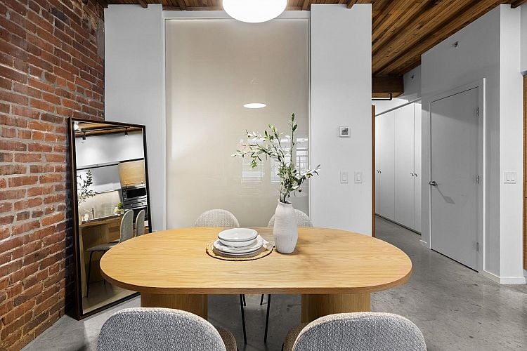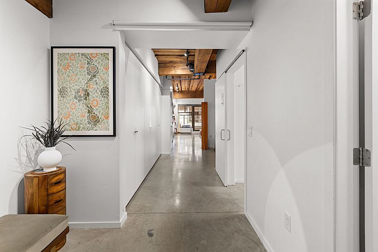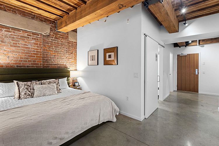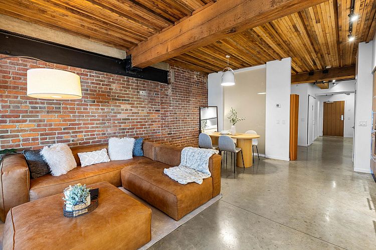 In the heart of False Creek, The Exchange stands as a quiet reminder of Vancouver’s past, thoughtfully reimagined for modern living. Once the city’s telephone exchange in 1911, this heritage landmark offers a refined collection of boutique residences where history is felt in every detail. Inside, a warm industrial palette unfolds exposed brick, polished concrete, & reclaimed Douglas fir beams rising beneath 9’2 ceilings, creating both scale & intimacy. The kitchen, finished in Italian Dada cabinetry with premium appliances, blends seamlessly into the living space, while a spa-inspired bath offers a frameless glass shower & separate tub. Outdoors, a 143 SF terrace extends the home into fresh air. 1 parking & 1 storage included. Above, a rooftop terrace with garden plots, BBQ & lounge