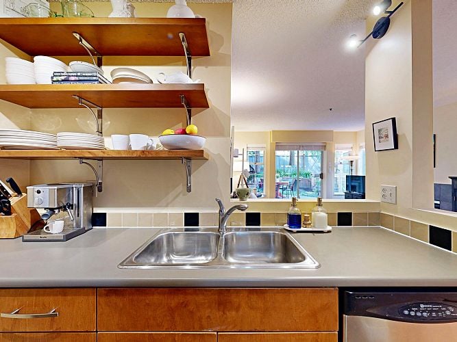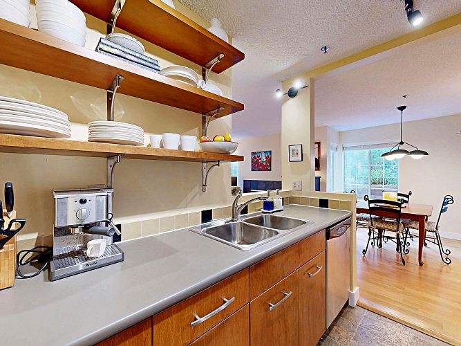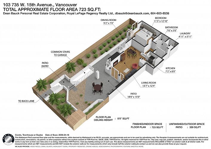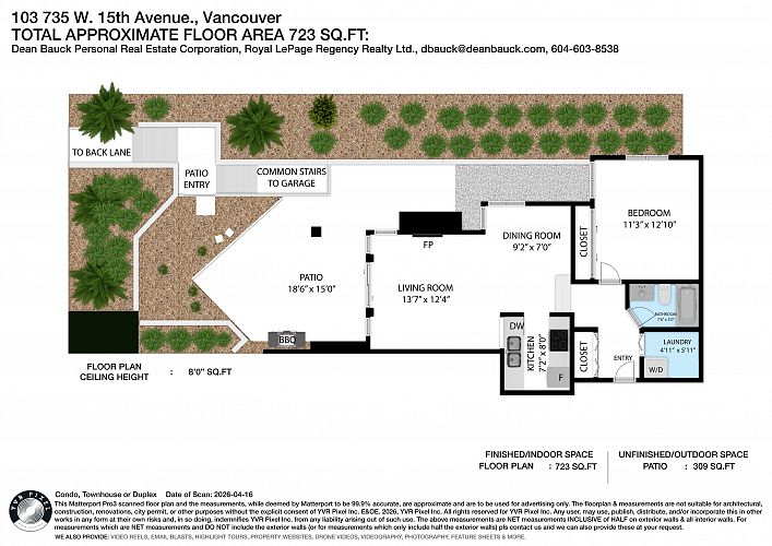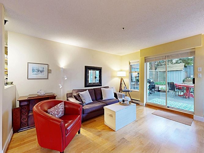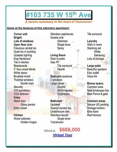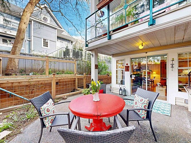 A serene sanctuary in the heart of Vancouver! Bright & comfortable corner unit with lots of windows, light & an inviting, open floor plan. Superb location close to VGH, shops, restaurants & the city's new transit nexus. Secure ground level home with sprawling patio surrounded by beautiful gardens & freshly updated landscaping. Bonus: adjacent common area expands the effective usable space. Measured interior space is 723 sf. Tasteful updates include lighting, stainless appliances, window coverings, bathroom & much more! Peaceful corner of a complex located on a quiet street - yet close to everything! Friendly, well managed building. You will fall in love with this - visit an open house or call now for your private viewing.