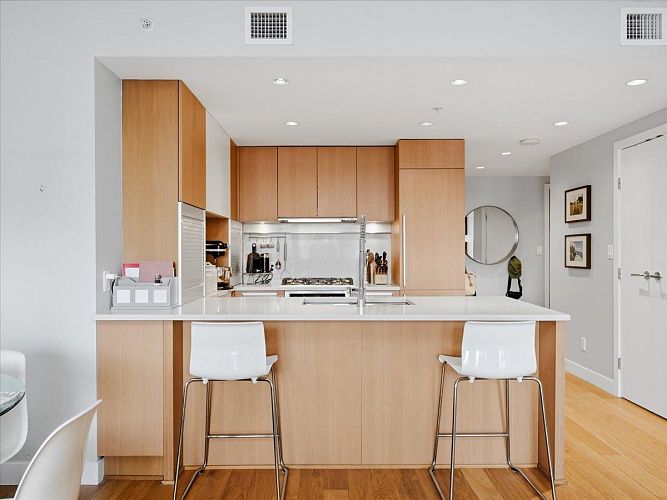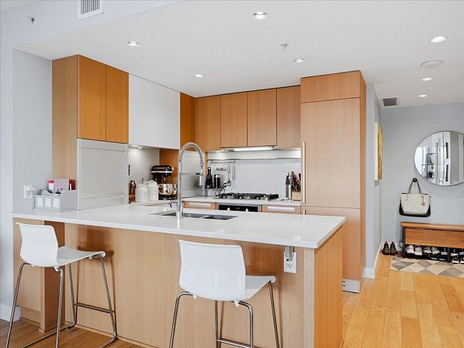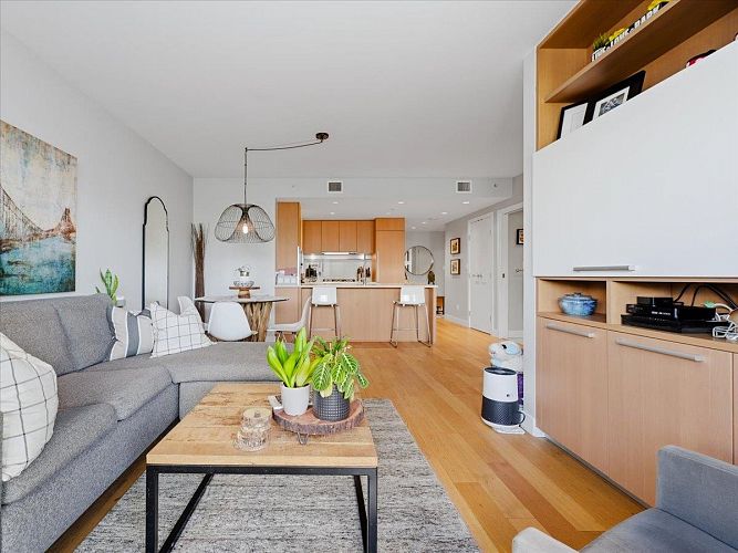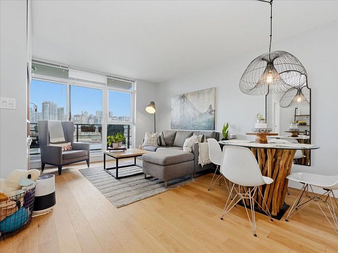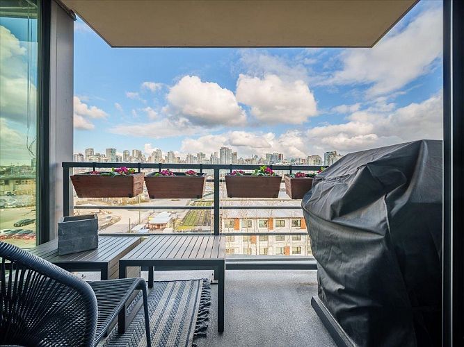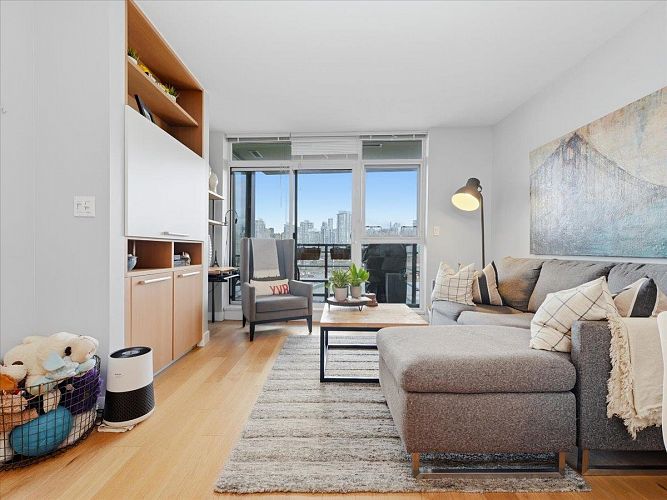 Step into a bright, airy home feels right from the moment you walk in.This spacious 1 bed+den at The James offers a layout that adapts easily to your lifestyle, whether that’s working from home, hosting friends, or simply enjoying a quiet evening in. Floor-to-ceiling windows frame sweeping city and mountain scenery that changes with the light, giving the space a sense of openness. Steps from 2 train stations, easy access on foot, by car, or bike to downtown, Mt Pleasant, Fairview, a neighbourhood full of great restaurants, cafes, and shops right at your doorstep. Residents enjoy concierge service 7 days/week, mtg+ amenity spaces, a fully equipped gym with sauna and steam room, plus a rooftop community space with panoramic views. The building is pet-friendly, 1 pkg-EV ready, 2 stg lockers.