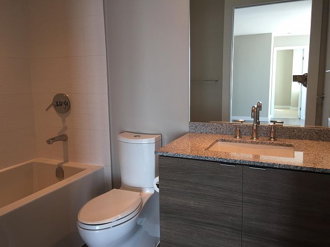 Very rare find! South facing 2 bedrooms corner unit with 270 degrees panoramic STUNNING view of Water, City & Mountains,93SF balcony. Conveniently located above Marine Drive Skytrain Station, T&T Supermarket,Shoppers,Winners,Starbucks,A&W,Subway,Restauranta,Cineplex Theatre, Fitness World, Liquor Store, Pub and much more. Stainless Steel appliances with paneled fridge & dishwasher, granite counter top, soft-closing cabinetry. 1 parking on level P4 & locker. Management fee includes Heating. Very secured and well maintained building. Good long term tenant now on month-to-month lease at $3040/month without locker. Churchill Secondary catchment. MUST SEE! Please allow min 24 hours to tenant for showing requests. Measurements from floor plan.