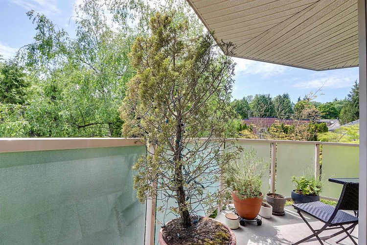 Bright top floor 2 bedrooms, 2 bathroom corner unit with a wrap-around balcony. Tastefully updated throughout, this home was fully renovated and is move-in ready. Spacious layout with lots of windows, natural light and generous sized bedrooms. The bright kitchen offers warm wood millwork, integrated appliances and quartz counters. Pet friendly building is well run and was fully rainscreened . One parking and one locker included (conveniently located on the same level). Outstanding central location steps to Douglas and Heather Parks, and minutes to shopping on King Edward, Cambie or South Granville. Excellent transit access and close proximity to both hospitals.