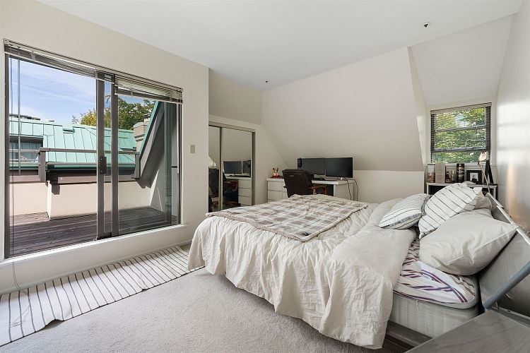 RARELY AVAILABLE! A 1284 SqFt PENTHOUSE with 2 PRIVATE PATIOS, in a FULLY RAINSCREENED building, just a stone’s throw from VGH! You can update a kitchen, but you can’t change a FLOORPLAN or LOCATION! This property, with unique ARCHITECTURAL FEATURES is a BLANK CANVAS for your DREAM HOME! The main living area offers multiple SKYLIGHTS, can easily accommodate FULL SIZED furniture, offers a GAS FIREPLACE, a dining room large enough for a 6 PERSON TABLE, all surrounded by newer TRIPLE PANE WINDOWS for maximum NOISE REDUCTION. The primary is large enough for a KING SIZED bed, offers 2 closets, an ensuite, and access to the 2nd patio. BRILLIANT LOCATION! Just steps to VGH, CITY SQUARE Mall, Broadway SKYTRAIN Station, CAMBIE VILLAGE & the FALSE CREEK Seawall. Pet OK, includes 2 PARKING & STORAGE.