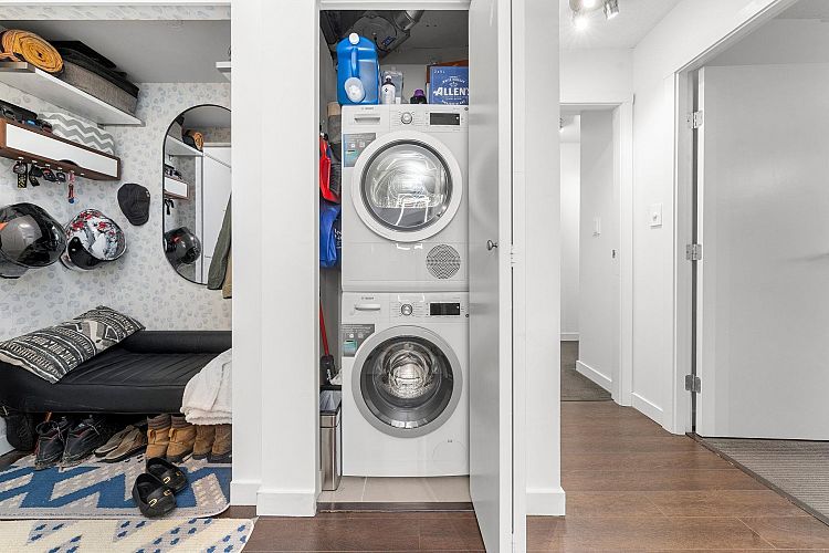 Welcome to Maynards Block! This immaculate SW-facing corner home perfectly blends modern comfort, security, and convenience in the heart of False Creek. Just steps to the Canada Line–Olympic Station (<20 min to YVR) and a quick stroll to shops, seawall, and restaurants. Enjoy a well-run building with concierge, fully equipped gym, meeting room, and rooftop garden plots with pergola. The home offers stair access to 2nd Ave—ideal for direct skytrain access or cycling. Inside, every detail shines: upgraded Bosch washer/dryer & dishwasher, Philips Hue lighting, Lutron automated shades, 3 smart home thermostats, two 65” 4k TVs, custom California Closets with builtin fireplace, 1 storage + 1 parking space. AC-ready, pet-friendly, and impeccably maintained. Listing only on market until Nov 20th