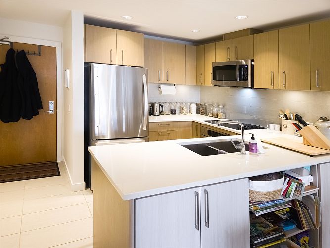Welcome to SAIL by Award-Winning Adera, nestled in UBC’s sought-after Wesbrook Village. Built to REAP Gold Standard, this modern West Coast home blends natural materials with clean design. This bright 2-bedroom, 2-bath suite features radiant in-floor heating, a gourmet kitchen with granite countertops and stainless-steel appliances. Enjoy a spacious layout, in-suite laundry, and a private north-west-facing patio overlooking a peaceful water feature in the interior courtyard. Includes parking and storage. Steps to campus, shopping, restaurants, parks, and the new dog park. Well-managed strata in a quiet, convenient community. Allows 1 dog/cat. Open Sun Nov 9th, 2-4pm.