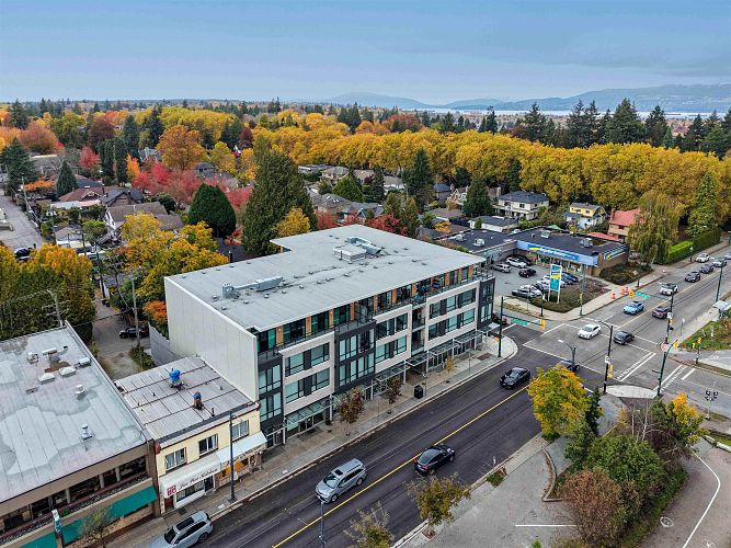 Welcome to Boulevard by Redekop Kroeker Developments, a boutique West Side gem in prestigious Kerrisdale! This quiet upper corner 2 bed, 2 bath home offers 1,021 sq .ft. of bright, stylish living w/ 1 0' ceilings, 327 sq .ft. wraparound patio, freshly updated w/ new carpet+ full repaint, this home is move-in ready.Sleek kitchen features Fisher & Paykel stainless steel appliances, paired w/ oak engineered hardwood flooring for a warm and modern feel. Generous bedrs, in-suite storage, & in-suite laundry enhance everyday comfort. Steps to Kerrisdale Village's charming shops, cafes, restaurants, parks, top schools, and easy transit to UBC, Downtown & YVR. This rare corner residence blends boutique living w/ exceptional outdoor space in one of Vancouver's most beloved neighbourhoods. A must-see