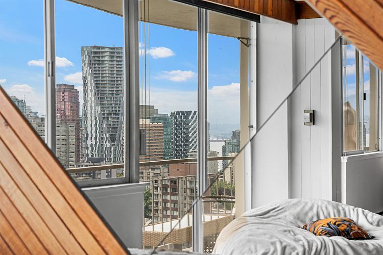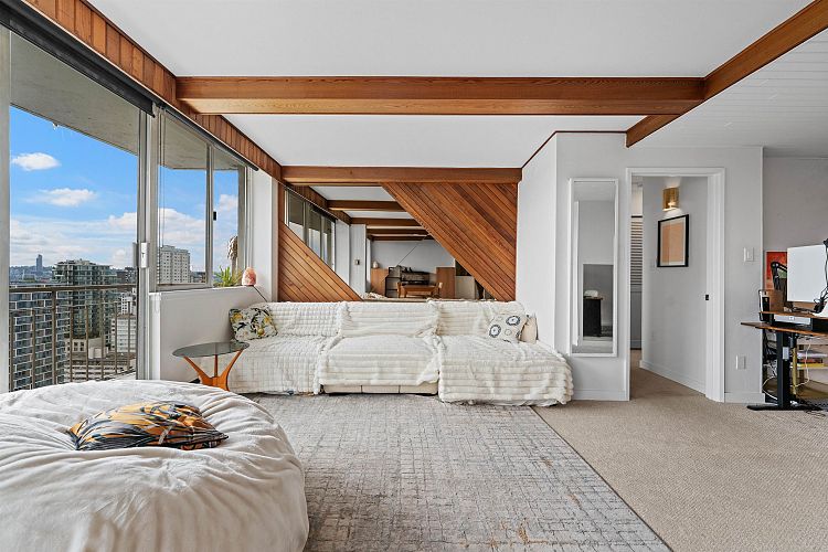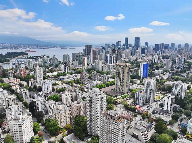 $5000 BUYERS AGENT BONUS! This is a rare opportunity to own a unique sub penthouse in a premium West End location at a sharp price.Spectacular 2 bed 2 bath condo on the 25th floor in the heart of the West End. Two units professionally combined to create a large, bright, open layout with balcony and stunning views.Quick stair access to an expansive rooftop room & balcony with true 360-degree views of the entire city. An unmatched lifestyle setup. Steps to English Bay, Lord Roberts Elementary, Stanley Park, and Denman Street with countless shops, and restaurants. Includes 2 parking stalls, 1 double large storage locker, indoor pool, rec centre, bike room and Laundry.