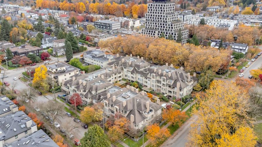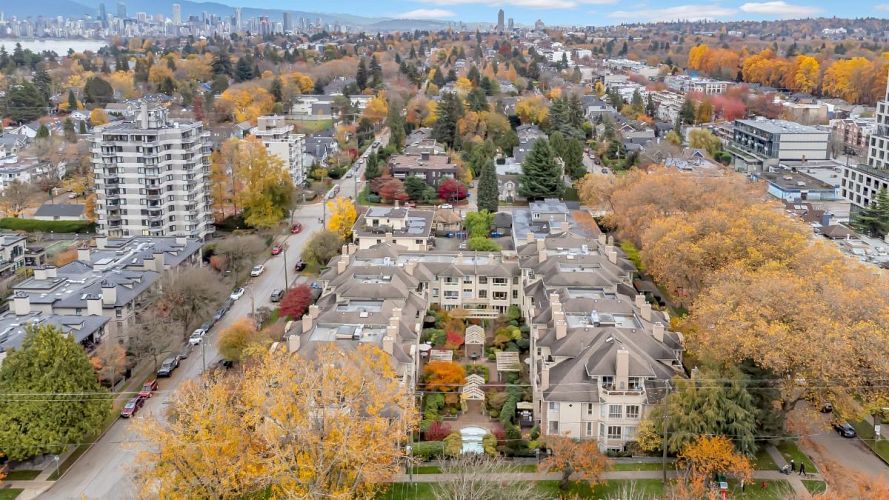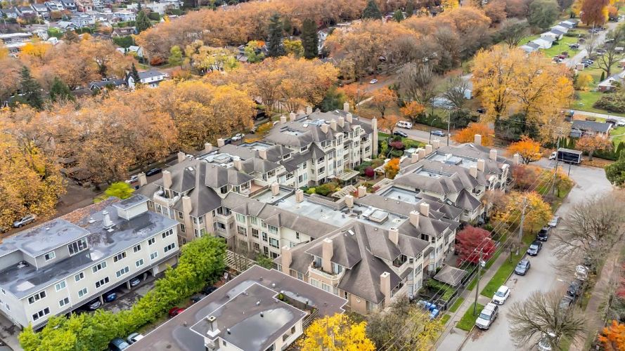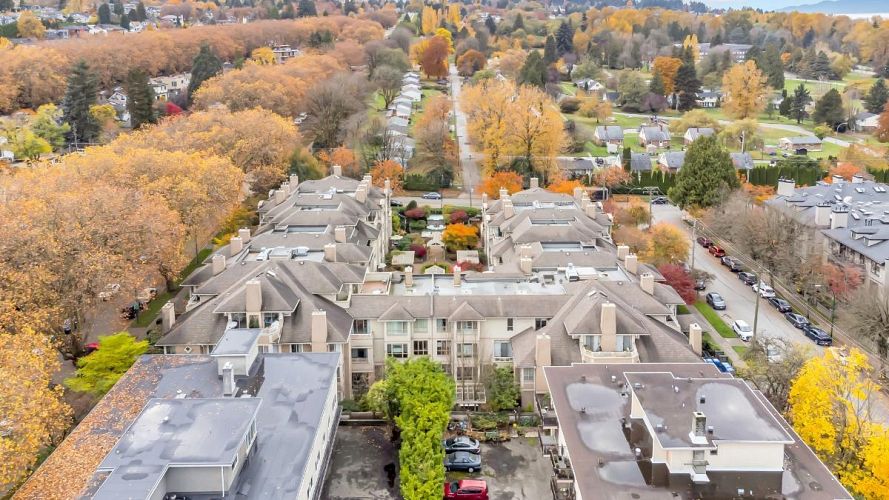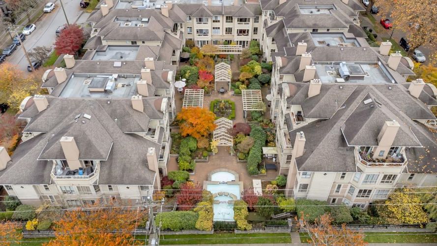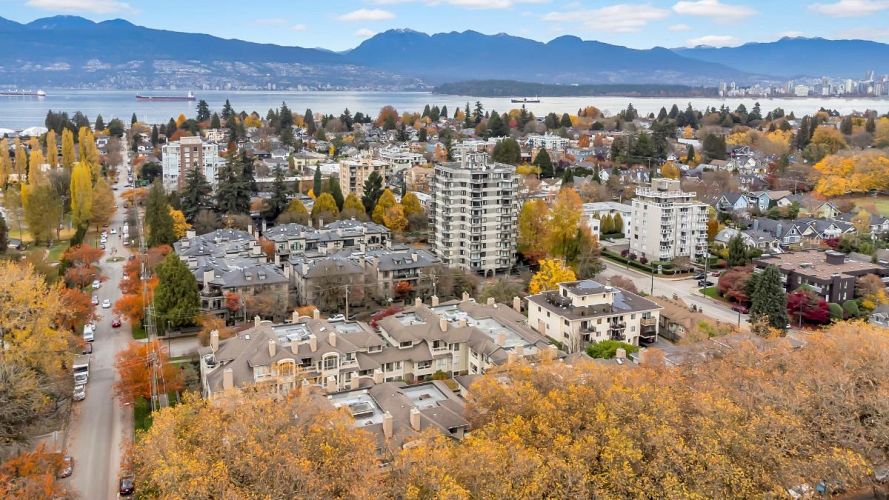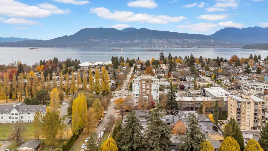 Discover refined West Coast living in the heart of Point Grey at the Cumberland. This expansive 2-bed, 2-bath residence offers generous proportions, elegant finishes and a serene outlook from a sought-after boutique building. Soaring 9-ft ceilings ground the open-plan living and dining area, while a gas fireplace and private patio bring warmth and connection to nature. The master retreat features a walk-in closet and spa-style ensuite bath. 100% Rainscreened. Two Parking stalls #32/33 (P1), and storage locker #34 (P1). Building has 55+ age restriction. View more photos online and join us at our Live Stream broadcast on our FB page: Thurs Nov 13th (5PM), private showings by appt only Fri,Sat,Sun Nov 14-16th (2-4PM). No offers presented until Monday Nov 17th.