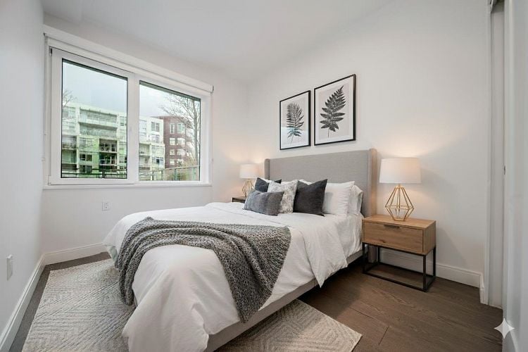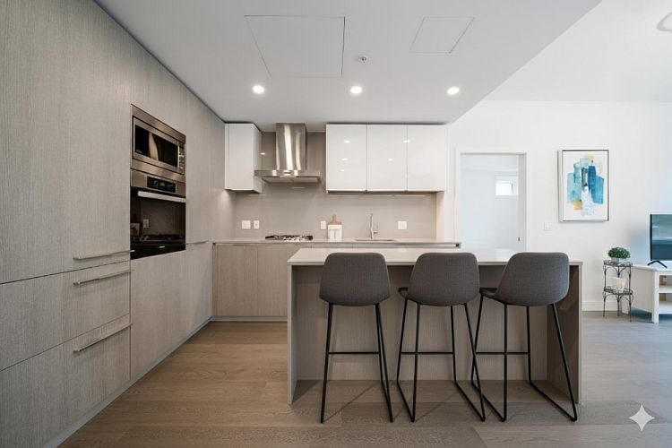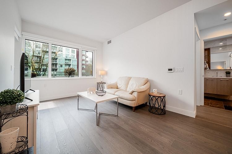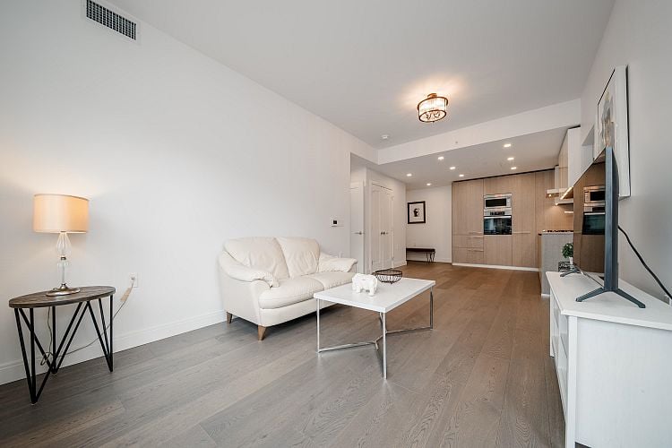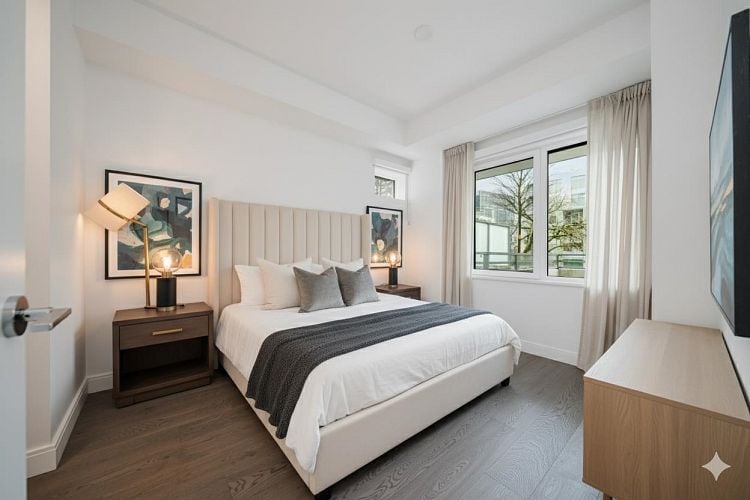 Patio Lovers & boutique park-side living at Primrose-right next to Queen Elizabeth Park.Rare above ground level Townhouse style apartment has dual suite access from interior of building & from patio-for ultimate convenience. Exclusive 239 sf patio for combined living of 1,057 sf.This elegant 2 Bed/2Bath offers the perfect location to the BEST of Vancouver-minutes to Oakridge Shopping Mecca, Downtown, groceries, restaurants, Eric Hamber Secondary & Skytrain. LEED Platinum concrete construction boasting exquisite aesthetics & finishings: 9’ ceilings,Italian bespoke cabinetry, Miele & Euro applnces w/ gas stove, wide plank laminate flrs, AIR CONDITIONING, massive patio for gardening, bbq’s & entertainment, quartz countertops, Full-size front -load W/D, spa-bathrooms,1EV-ready PRKG & 2 lockers