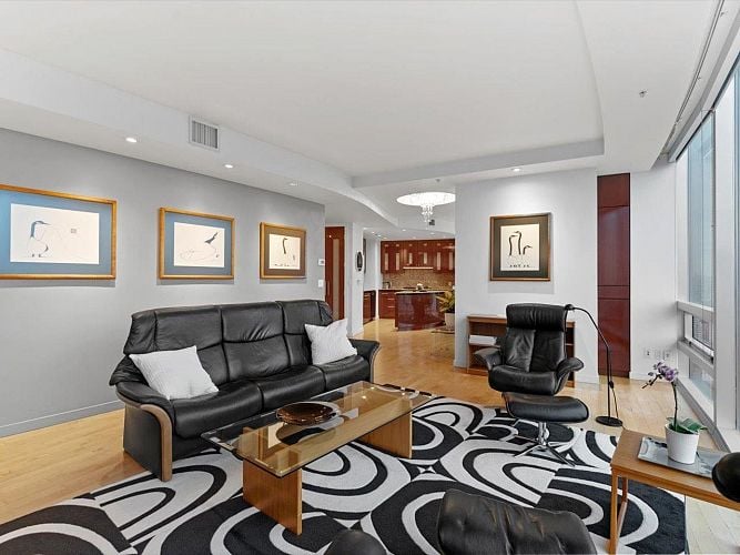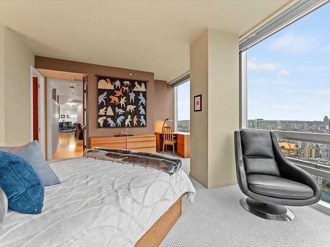 Welcome to The One Wall Centre, an architectural landmark, winner of the Emporis Skyscraper Award (2001).This 2bedroom, 2bathroom residence with 1,530 sq/ft of refined living space, showcasing breathtaking panoramic views of English Bay, Kitsilano, and extending all the way to Vancouver Island. Floor-to-ceiling windows bathe the interior in natural light.The primary suite is complemented by a luxurious ensuite featuring dual vanities, a jetted soaking tub, and a separate glass-enclosed shower. The kitchen is appointed with granite countertops, a central island, and premium Bosch and Sub-Zero appliances, Residents of The One Wall Centre enjoy access to the Sheraton Hotel’s world-class amenities and the assurance of a full-time concierge providing the highest standard of service and security