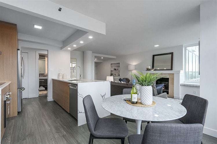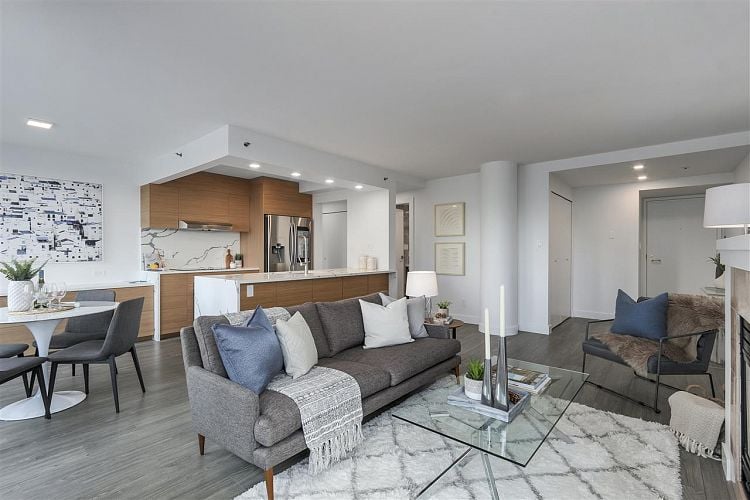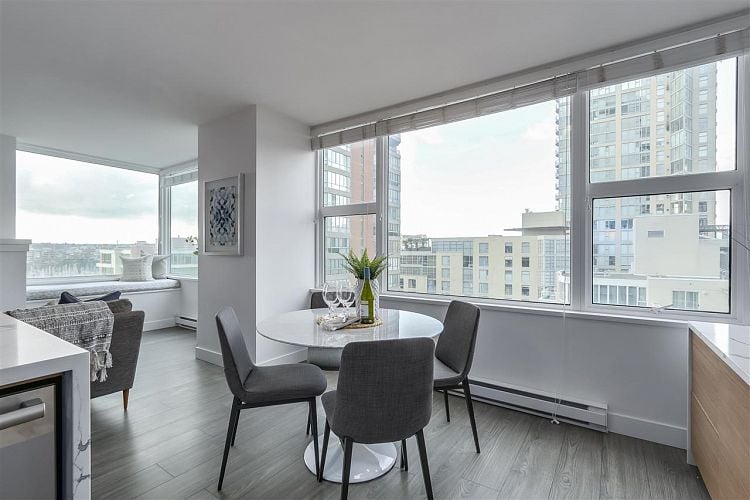 Fully Renovated in a Semi-Waterfront Building - Incredible Value! Beautiful 2 Bed / 2 Bath corner apartment at the Prestigious 888 Beach Building. Open layout floorplan with stunning views of False Creek, Marina, and Granville Island!! Tastefully updated throughout; Laminate Flooring, gourmet kitchen with endless custom cabinets, Quarts Waterfall Counters, Bosch Appliances, Samsung Interactive Fridge, Rain Shower in Bathrooms, Custom Closets Organizers, and much more! Residents at 1500 Hornby enjoy access to a well equipped exercise center, an indoor pool and spa, a beautiful garden, very elegant lobby and waiting area, and Concierge Service! Enjoy the seawall at your doorstep, with a False Creek Sea Taxi Docks steps away! This is Yaletown Living at it's finest. 1 Parking, 1 locker.