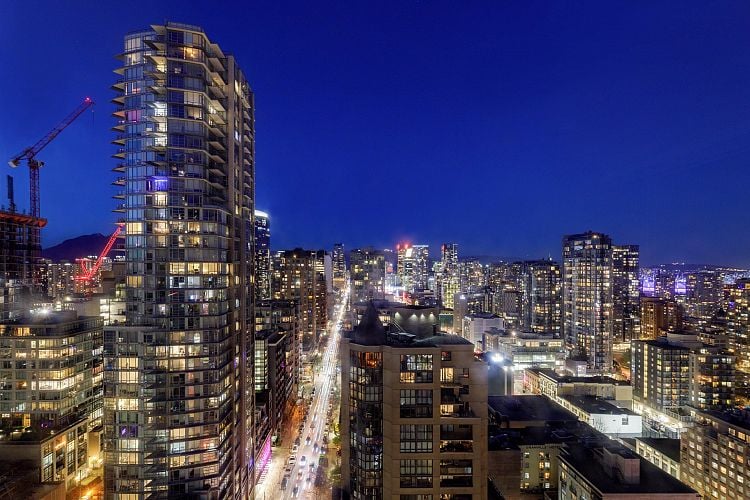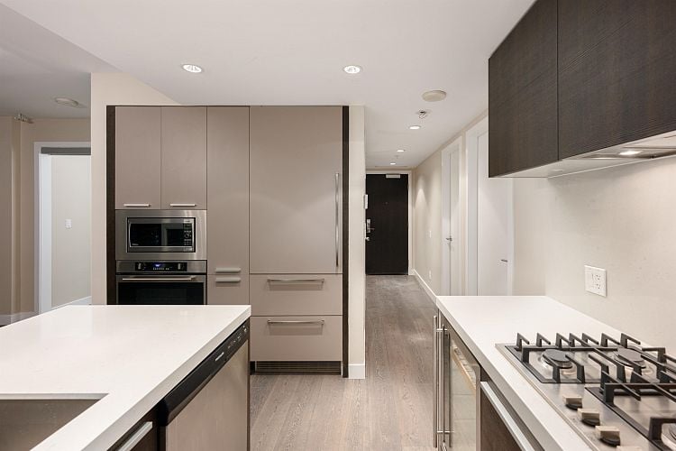 MADDOX - A highly esteemed residence by renowned developer, Cressey. Spectacular views of the mountains, ocean, and glittering city lights await you in this coveted two bedroom, corner unit (only 9 in the building). Brand new engineered-wood flooring and painting. SOPHISTICATED DESIGN: Cabinetry by Armony Cucine from Italy, stone countertops & floor-to-ceiling windows for more light. Enjoy air conditioning in summer & heated bathroom floors in winter. IDEAL LOCATION: Easily stroll to the beach, restaurants, shops, parks & the SkyTrain. QUALITY: Superior sound-proofing. Innovative clay panel technology provides exceptional rainscreening & durability. LIFESTYLE AMENITIES: Enjoy 24-hour concierge service, the fitness centre, steam / sauna, business centre, rooftop lounge, & bike storage.