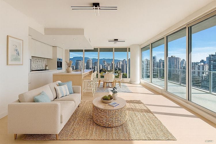 Incredible Views - at Mirabel by Marcon! This 2 bed, 2 bath NE corner home boasts floor-to-ceiling windows with panoramic ocean, city & North Shore mountain views plus a 200sf balcony w/ gas hookup. Gourmet kitchen features Armony Cucine cabinetry, Wolf gas cooktop + wall oven, and Sub-Zero fridge. Luxurious ensuite with Italian marble & double vanity. A/C, high-efficiency heating, and a versatile 2nd bedroom with custom built-ins, desk & Murphy bed ($15,000). Comes with 2 side-by-side parking & 1 Locker. Steps to parks, seawall & shops. Unbeatable West End location only steps to shopping, parks & seawall. *Some photos may be virtually staged.* OPEN HOUSE SATURDAY FEB 28 (2-4PM)