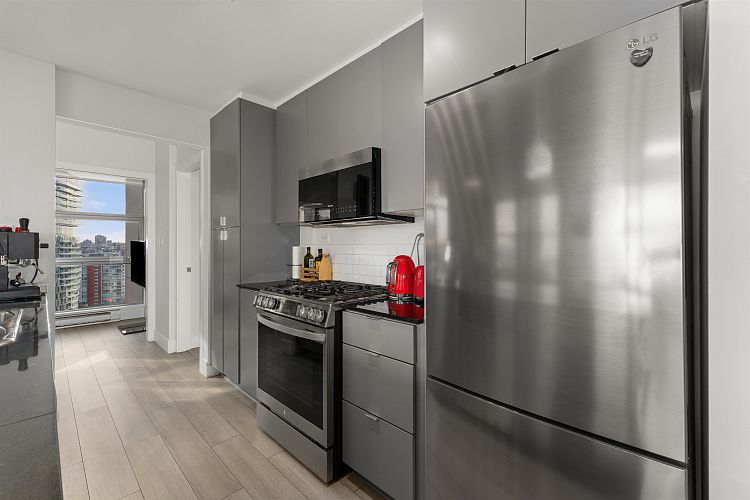NOVA by BOSA in heart of Yaletown. This stunning corner 2 Bed + 2 Bath + Den + Flex offers over 1,058 SF of luxurious urban living. An entertainer’s dream with an open kitchen, 10’ island, gas cooktop & stainless appliances. Bright, spacious living & dining fit house-size furniture and open to a covered balcony with sunny water views for year-round use. Bedrooms are separated for privacy, with a spa-like ensuite, inspiring den & large flex/pantry. Enjoy great amenities—gym, yoga space, hot tub, steam room, lounge, guest suite & courtyard. Prime Yaletown location close to Robson, Granville, Costco, T&T, Seawall, Stadium & Arena. Includes 1 parking & 1 locker.