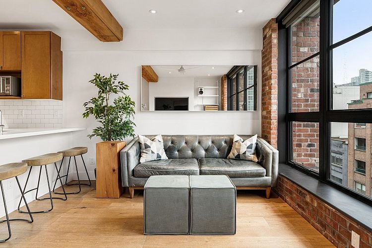 Live in a true piece of Vancouver history in the heart of Yaletown’s warehouse district. This striking heritage conversion showcases its original character with exposed brick walls and architectural beams, paired with wide plank white oak floors and a sleek gas fireplace with built-in TV. A full wall of floor-to-ceiling windows floods the home with natural light. The open kitchen works as well as it looks, with an eating bar, oversized sink, stainless steel appliances, and a gas range with griddle, all finished with high-end Corian countertops. Generous bedrooms, full sized laundry and a beautiful updated bathroom. Step outside to David Lam Park, the seawall, the Canada Line Station and some of the city’s best dining, all just a few blocks away. Includes parking and storage. Open Sat 2-4pm
