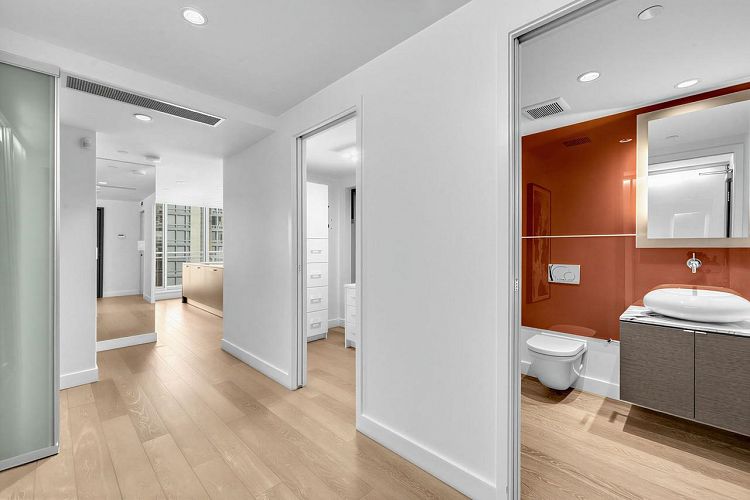Wake up to the ocean in one of Coal Harbour's most refined waterfront residences at West Pender Place. This elegant home offers sweeping ocean views from every room, creating a constant sense of calm and connection to the water. The expansive open layout is designed for effortless living and entertaining, enhanced by a fully integrated smart home system, custom built-in cabinetry, automated blinds, and dual-zone climate control for year-round comfort. The chef's kitchen is finished with Italian DADA cabinetry and a world-class selection of appliances from Wolf, Sub-Zero, Gaggenau, and Miele. Step outside to a generous terrace where sea breezes and sunsets become part of daily life. Complete with two side-by-side parking stalls, private storage, and bike locker.