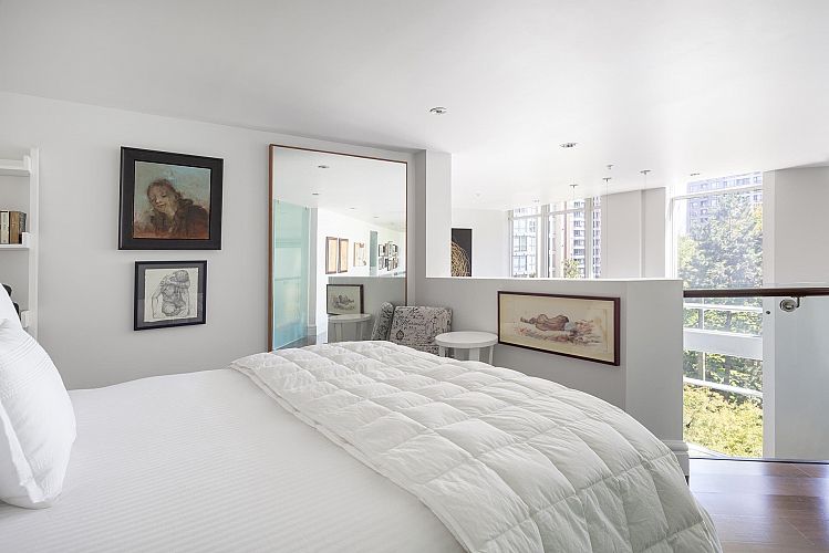 The right art changes how you live; the right space makes it possible. Connoisseurs of art & design will appreciate the 2000sf loft’s grandeur, created when the developer of boutique Tribeca Lofts combined 2 units for a “WOW” space unique to Yaletown. 16-ft ceilings with floor-to-ceiling windows and motorized blinds create uninterrupted wall space & shifting natural light. Concrete construction optimizes acoustic privacy; the shape, wrapped around the quiet courtyard, provides solitude from roads. A refined interior centers on a large kitchen island, an architectural staircase and glass balustrades. 2 lofted, king-sized ensuite bedrooms connect to the living space below; 2 parking and private storage room connect you to pragmatism. Some spaces are occupied; others stay with you.