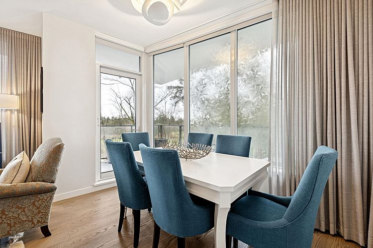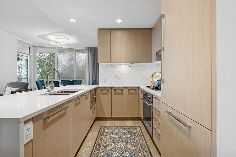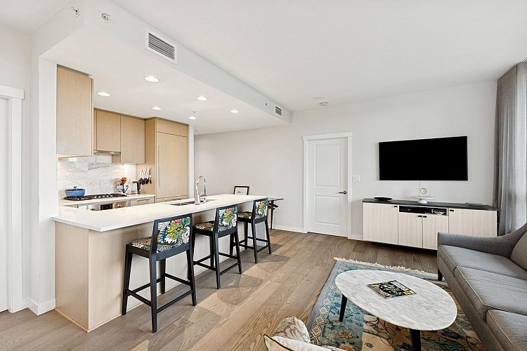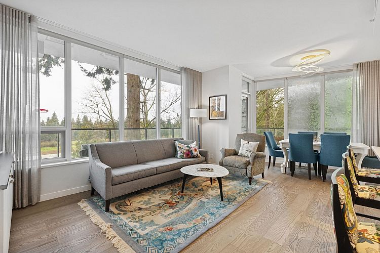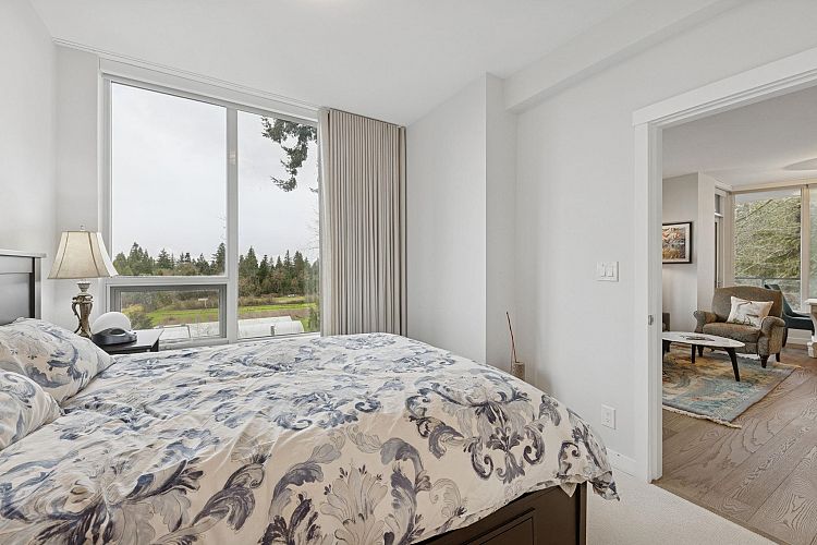 The Residences at Nobel Park by Polygon offer refined everyday living in the heart of UBC, surrounded by academic excellence & vibrant community amenities. Steps from Wesbrook Village, this picturesque, walkable neighborhood features tree-lined streets, shops, cafés & essential services. Excellent elementary & secondary schools are nearby making it ideal for families. Bright 2-bed, 2-bath SOUTH corner home showcases a spacious open-concept layout with 9-ft ceilings, floor-to-ceiling windows, AC & premium stainless-steel appliances in a designer kitchen. Enjoy sweeping 180-degree panoramic views of the tree line, UBC farm field & forest from every room, or relax with a book on the generous covered deck. Residents benefit from an in-building fitness studio, lounge, parks, restaurants, etc