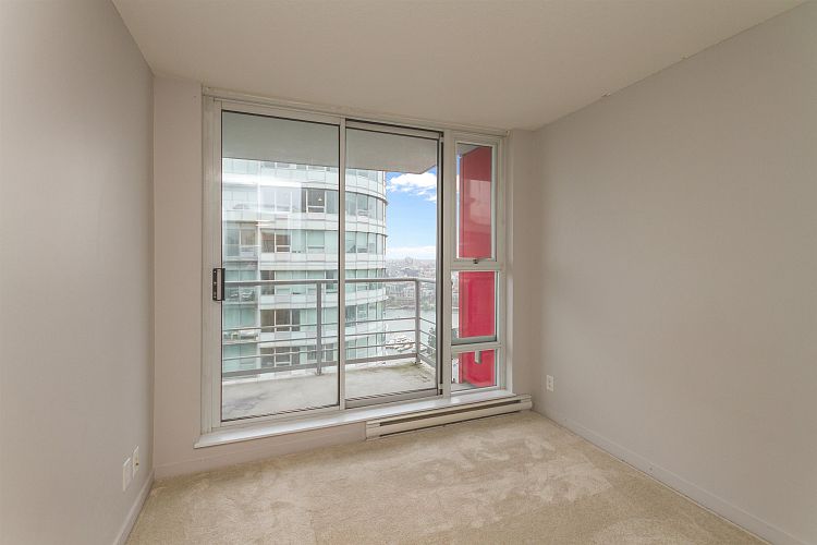 SPECTACULAR CORNER UNIT WITH PANORAMIC VIEW! Enjoy North-East and South views of the coastal mountains, waters, city and False Creek from all rooms on the 31st floor. Rare find 2-bedroom plus sun-drenched flex room as your home office, open balcony, floor to ceiling windows. Bedrooms are separated by living area for maximum privacy. Functional kitchen, in suite storage and laundry, 1 oversized parking stall just off the elevator. TONS OF UPDATES: flooring, carpets, painting, dishwasher (2023), BRAND NEW lighting, roller blinds, fridge, cooktop range, oven, microwave. EXCELLENT AMENITIES: 24-hour concierge, indoor pool, sauna, steam room, hot tub, exercise center and party room. CENTRAL LOCATION: steps to Costco, TNT, entertainment, transportation & SkyTrain station.