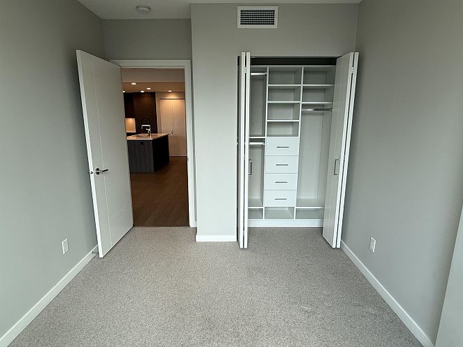 Almost 1000 SF 2-bedroom plus flex room unit in 'The Spot'. This unit is ideally situated in the heart of the city, at Cambie and West 12th, just steps from iconic Vancouver City Hall and the Canada Line, as well as Broadway transit corridor. This air-conditioned home features hardwood flooring throughout, new custom-built organizers in all closets, fully integrated high-end appliances and extensive quartz countertops and backsplash. The open-concept living and dining area offers excellent flow, with 2 bedrooms thoughtfully separated for added privacy. A good-sized flex room provides the perfect space for a den or home office. Covered balcony with a city view. Amenities include Exercise room and a fabulous rooftop deck featuring an outdoor kitchen, BBQ, veggie garden, playground and more