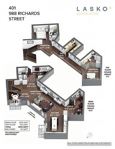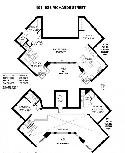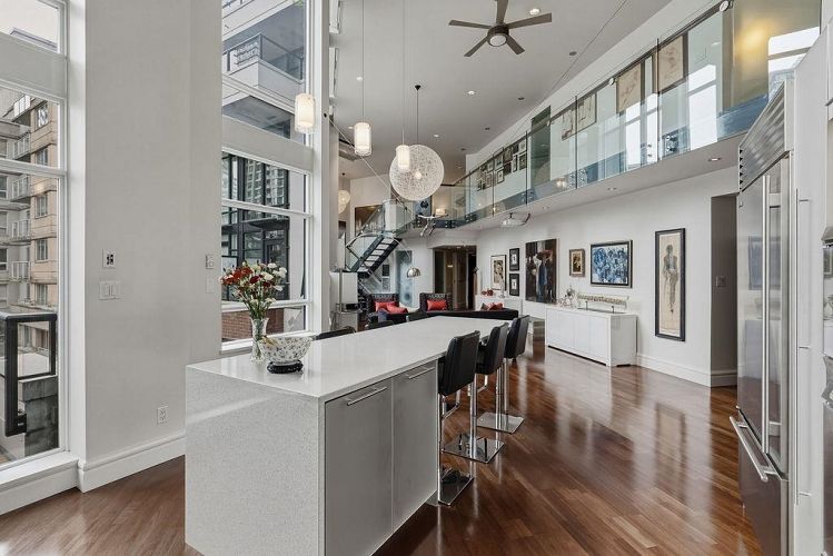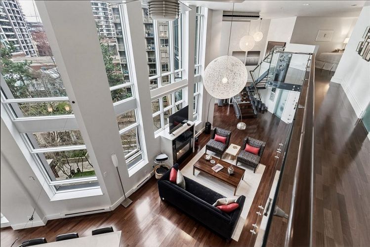 If you value spaciousness and you will love this “WOW” 2000sf loft’s openness. This is a condo that truly feels like a house. Design connoisseurs will appreciate 16-ft ceilings with floor-to-ceiling windows, uninterrupted wall space & shifting natural light. The developer of concrete, boutique Tribeca Lofts combined 2 units into a one-of-a-kind home wrapped around a courtyard for quiet, a rarity for Yaletown. A refined interior features a large kitchen island, an architectural staircase, glass balustrades and motorized shades with a generous office space that could make a dramatic dining room. A king-sized ensuite primary overlooks the living area below; a second ensuite bedroom could be ideal for office/occasional guests. 2 parking, private storage room and locker, too. OPEN: Sun 4:30-6pm