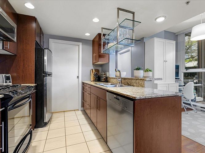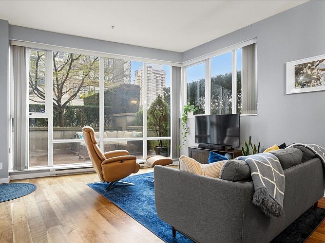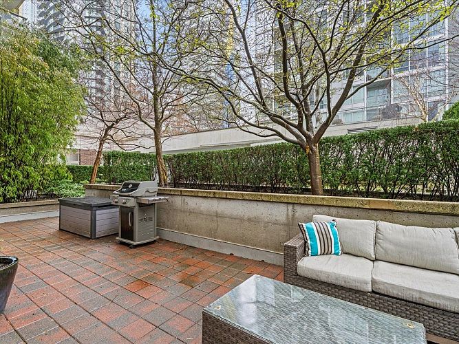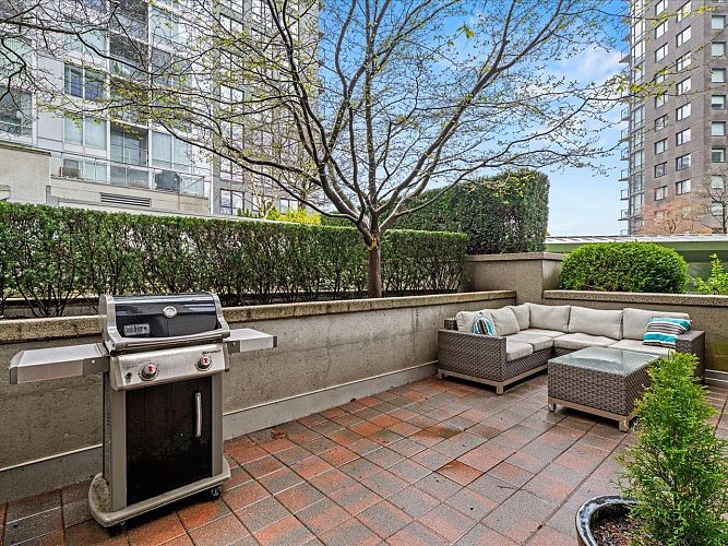 Experience refined Yaletown living in this expansive 1,075 sqft residence offering 2 beds, 2 baths, & a versatile open den—perfectly suited for a home office/curated flex space. Thoughtfully designed w/ a seamless open-concept layout, the home is both functional & inviting, ideal for modern city living. Step outside to an impressive 356 sqft outdoor retreat—an extension of your living space & a rare offering in this prime location, perfect for entertaining or unwinding in privacy. Well-separated bedrooms provide optimal comfort, while the home is complete with 1 parking stall & the rare convenience of 2 storage lockers. Residents enjoy the benefits of 24-hr concierge service & exclusive access to the renowned Super Club. Offers as they come.