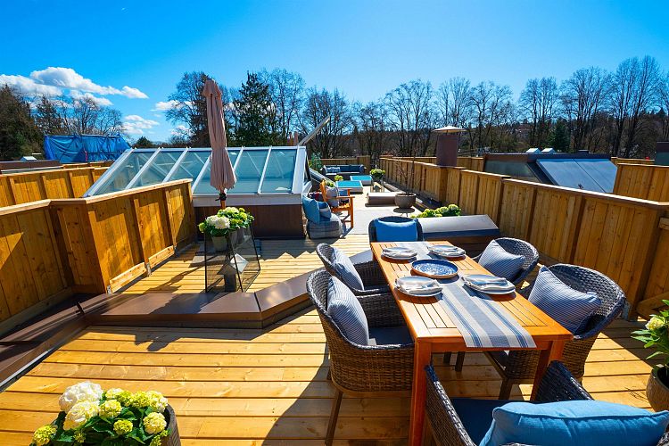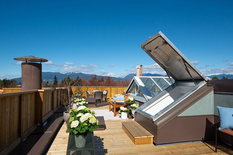 Stunning 2 bed, 2 bath Kitsilano PENTHOUSE in one of Vancouver’s most coveted neighbourhoods, featuring a BRAND NEW expansive private rooftop patio with panoramic mountain, city, and sunset views—an entertainer’s dream and the ultimate indoor/outdoor lifestyle. Bright, open-concept living above with skylights, plenty of windows, and seamless flow, plus two bedrooms and flex space below. Fully rainscreened building with new roof for peace of mind. Amenities include workshop, event/play space, and bike storage. Walk Score 98—steps to top cafés, boutiques, beaches, UBC, and transit. 1 parking. Prepaid lease to 2071. OPEN HOUSE SATURDAY APRIL 18th 2-4pm.