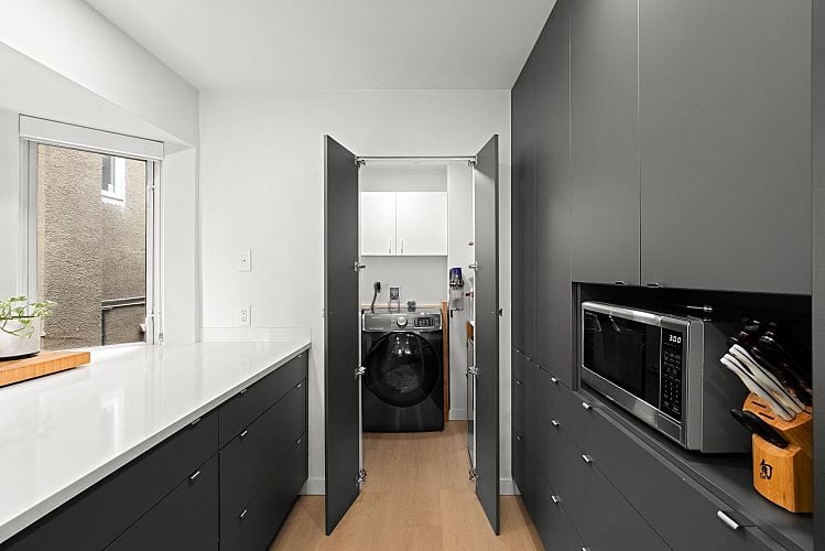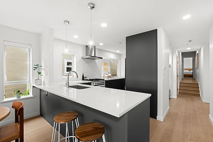 Stunning N/E Corner Unit in Kits! Bright, stylish, & beautifully updated, this coveted corner home blends elevated design with effortless comfort and function. Oak hardwood & tile flooring set the tone, while the chef-inspired kitchen shines with Silestone counters and premium appliances. Thoughtful layout offers ideal separation between living & private spaces, perfect for both entertaining & unwinding. Enjoy natural light throughout, a charming corridor water view, & ultimate privacy with only 2 suites per floor. Well-maintained, pet-friendly building with a strong sense of community, shared storage, & 2 side-by-side parking stalls. Incredible walkability, steps to W.4th shops, cafes, dining, and the beach. A rare find in one of Kitsilano’s most sought-after locations! OH Sat Apr 18 2-4