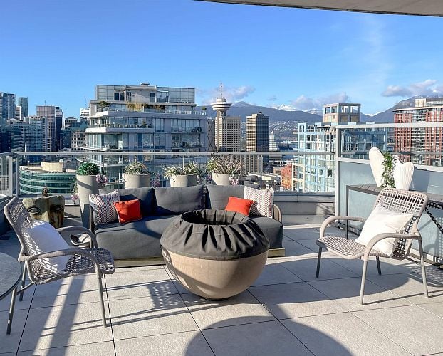 Luxury 3 bed 3 bath Penthouse. Beautiful & extensive Reno's by award winning Penthouse designer aBecker Design. Enjoy amazing Water & Mountains view. Great opportunity to own & enjoy w/ bonus of amazing revenue opportunity for AIRBNB & Short Term rental. Top of the line Miele kitchen w/wine fridge & new spa like bathrooms. A/C. Floor to ceiling windows. Nearly 700 sqft of patios/decks incl.roof top patio w/built-in wet bar, BBQ & TV. Pool, Hot-tub, Sauna & Gym. Pet Friendly. Everything city has to offer right at doorstep! Concerts & Hockey at Rogers Arena, Sporting events & concerts at BC Place, Casino, Skytrain, Costco, T&T, theatre's, Seawall, Parks, Restaurants & Entertainment of Yaletown all Next doorl You won't be disappointed. Buy for World Cup 2026 arrival Call to view. Open Sun 2-4