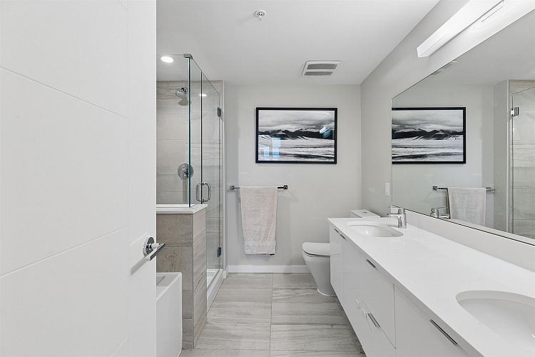 Welcome to THE SPOT - Where luxury meets the ultimate location! This North West facing 3 bedroom, 3 bathroom Plus Den, top floor corner home features spectacular 180 panoramic views of the North Shore Mountains and Vancouver Skyline! With Craftsman inspired finishings throughout, a gourmet kitchen with premium integrated Bosch Appliances, Air Conditioning, Spa-inspired ensuites with double sinks & a soaker tub, California Closets in the primary and pantry and a generous 162 Sq Ft patio, this home is perfect for entertaining, relaxing and everyday enjoyment! Amenities include a concierge, gym and a 10,000 sq ft. rooftop lounge with a garden and playground. This homes Comes w/2 parking spots and 1 storage locker. OPEN HOUSE - SUN MARCH 8th 2-4pm