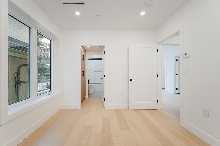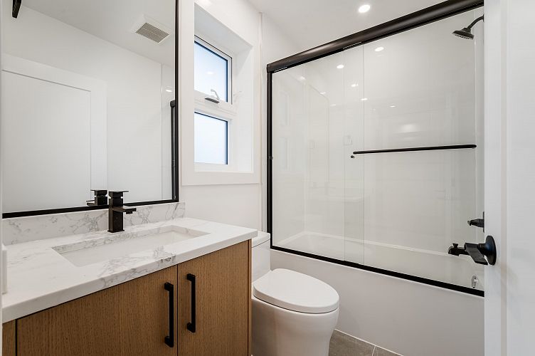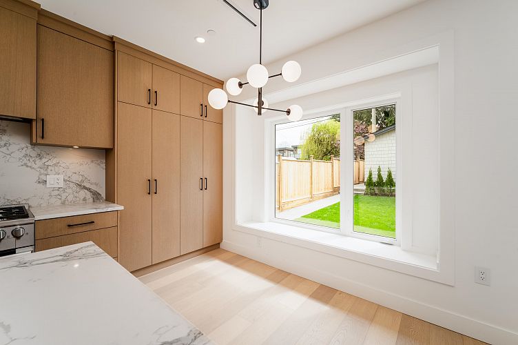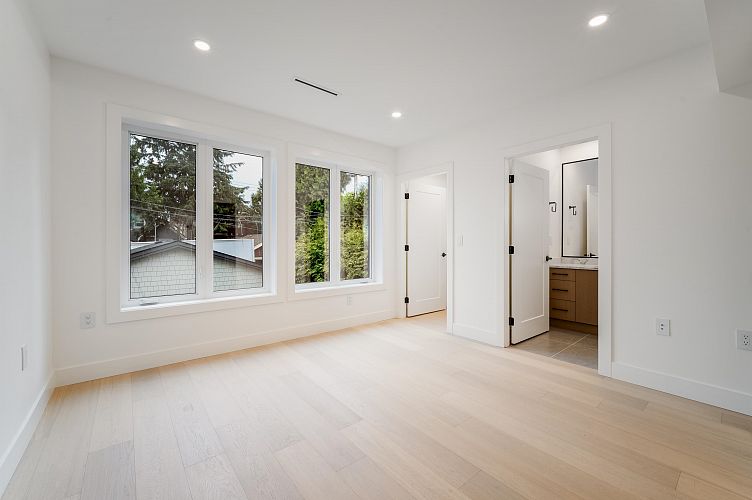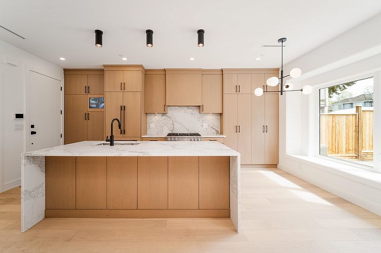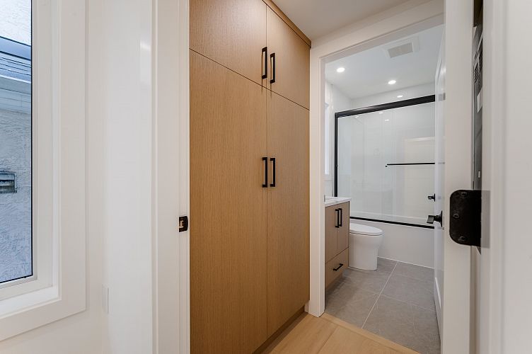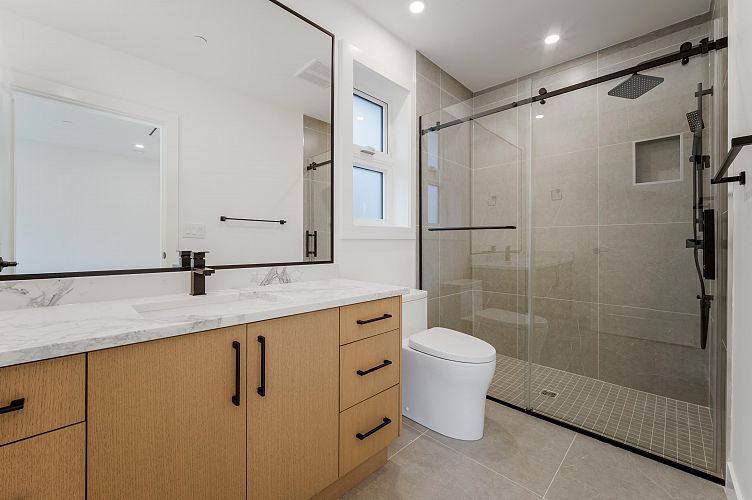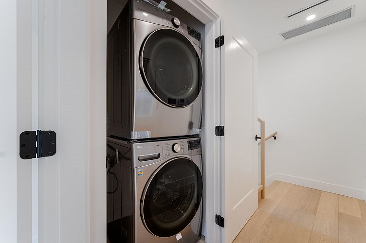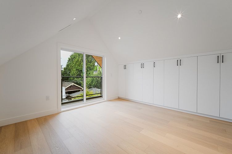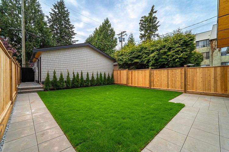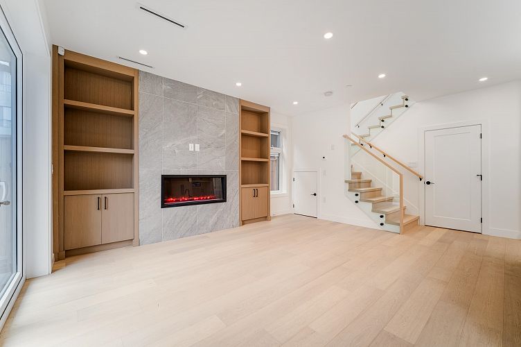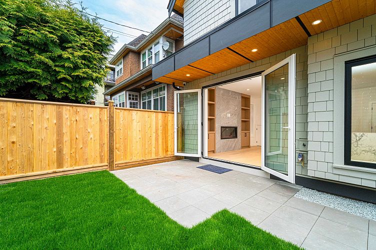 Don't miss out on this spacious and bright BACK 1/2 DUPLEX nested on a quiet street, in Cambie, one of Vancouver's best neighbourhoods. Superior transit, shopping and dining, and next door to Douglas Park with ample open fields, community center, and playground area. This home features functional floor plan, large kitchen with high quality appliances, living / dining space and powder room on main level and 3 bedrooms with ensuites on the second and third level. Large floor to ceiling windows, custom millwork, radiant in-floor heating, HRV, central A/C, security system, 556 sq ft of crawl space that can be used for additional storage, private yard and detached garage. OPEN HOUSE: SUN Oct 19 from 2:30-4:00 PM.